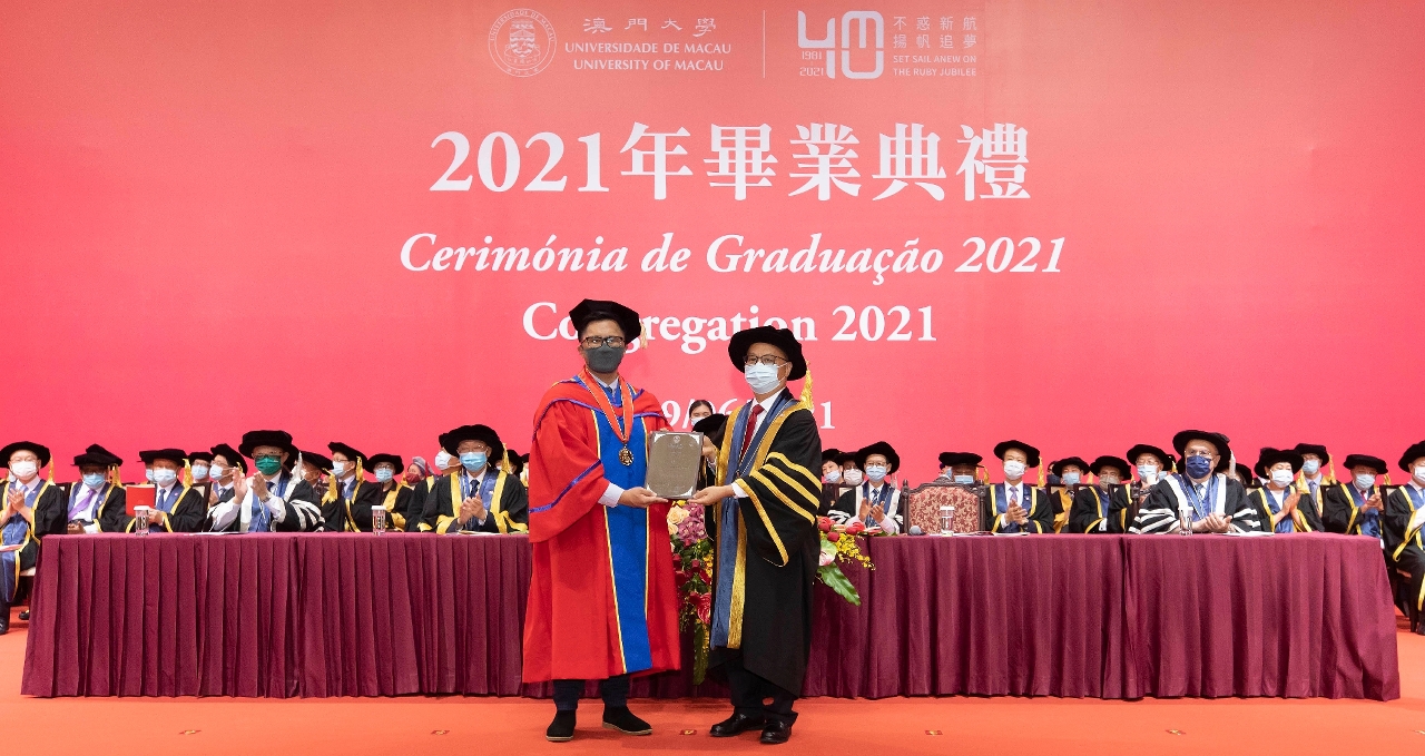 澳門大學今(19)日在畢業典禮上頒發“澳門大學卓越教學獎",鼓勵及表揚在教學方面有傑出表現的教學人員。經過嚴格遴選,2020/2021學年的獎項由人文學院英文系助理教授Jeremy Centeno De Chavez奪得此殊榮。