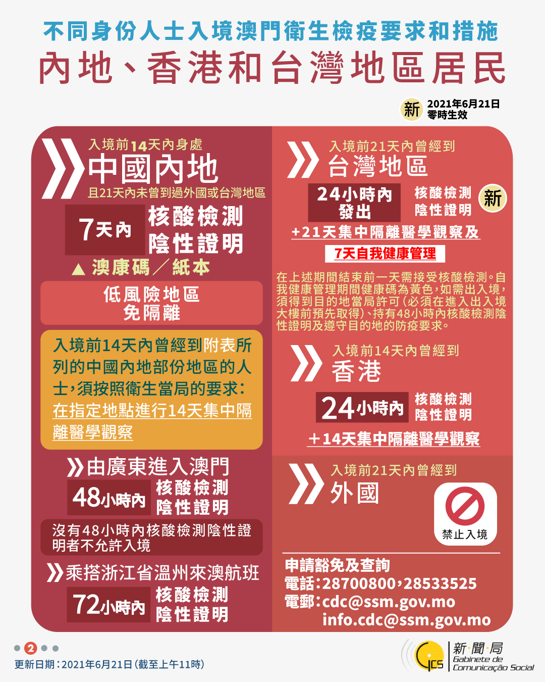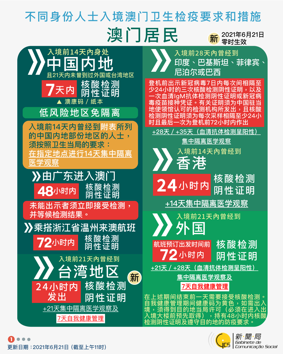 【圖文包】2021/6/21最新入境澳門衛生檢疫要求和措施