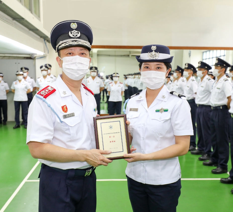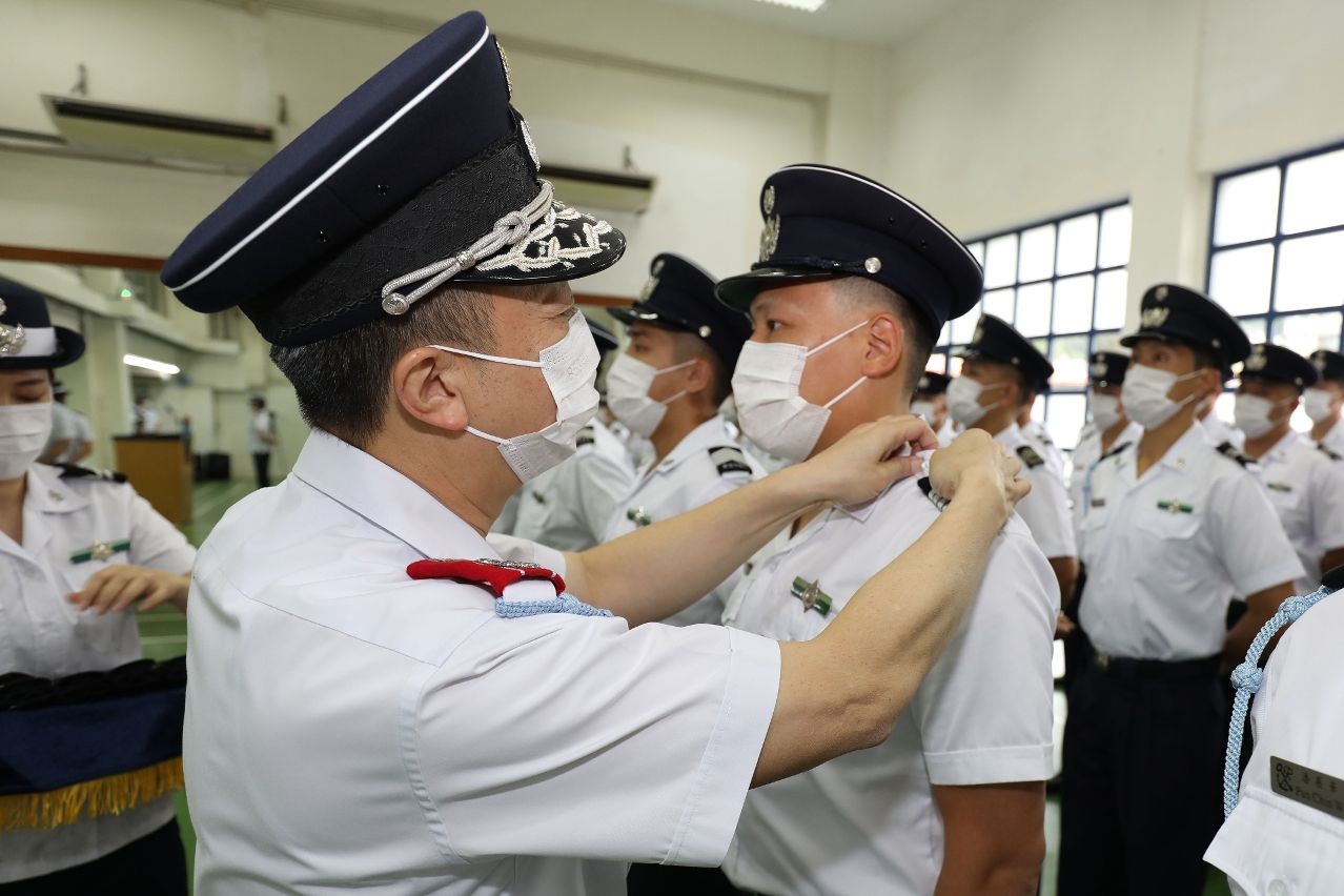 各晉升人員在宣誓後,由黃文忠關長、周見靄副關長及李煜輝助理關長(代任)為其等戴上新肩章,正式晉升成為首席關員。儀式上亦向獲得總成績優異獎的人員麥翠姍頒發獎項。