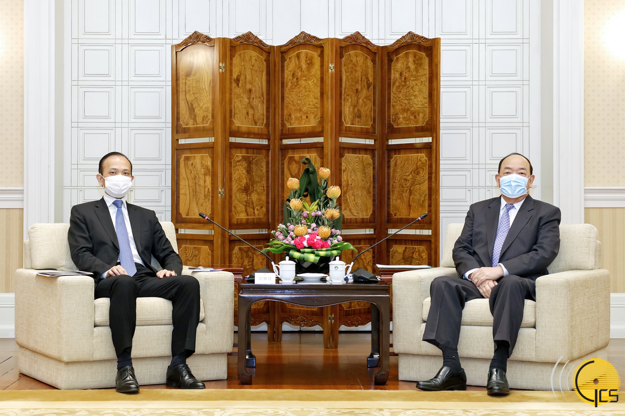 劉雅煌會長向行政長官介紹了該會新任領導班子成員。他表示,特區政府多年來一直支持和關心僑界的發展,推出的一系列惠民政策及提振經濟措施,得到了海內外僑界的正面評價。
