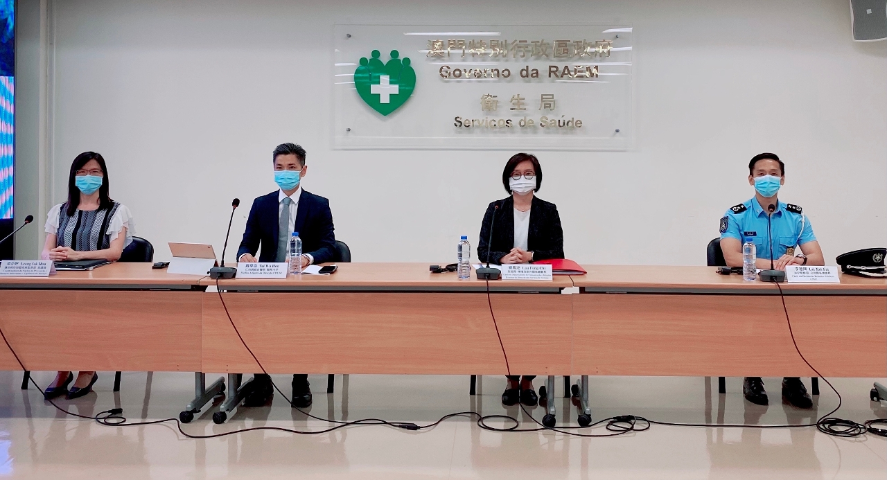 新型冠狀病毒感染應變協調中心(下稱應變協調中心)於今(28)日舉行例行記者會,仁伯爵綜合醫院戴華浩醫務主任、旅遊局傳播及對外關係廳劉鳳池廳長、治安警察局公共關係處李德輝處長、疾病預防控制中心傳染病防制暨疾病監測部梁亦好協調員共同會見傳媒。