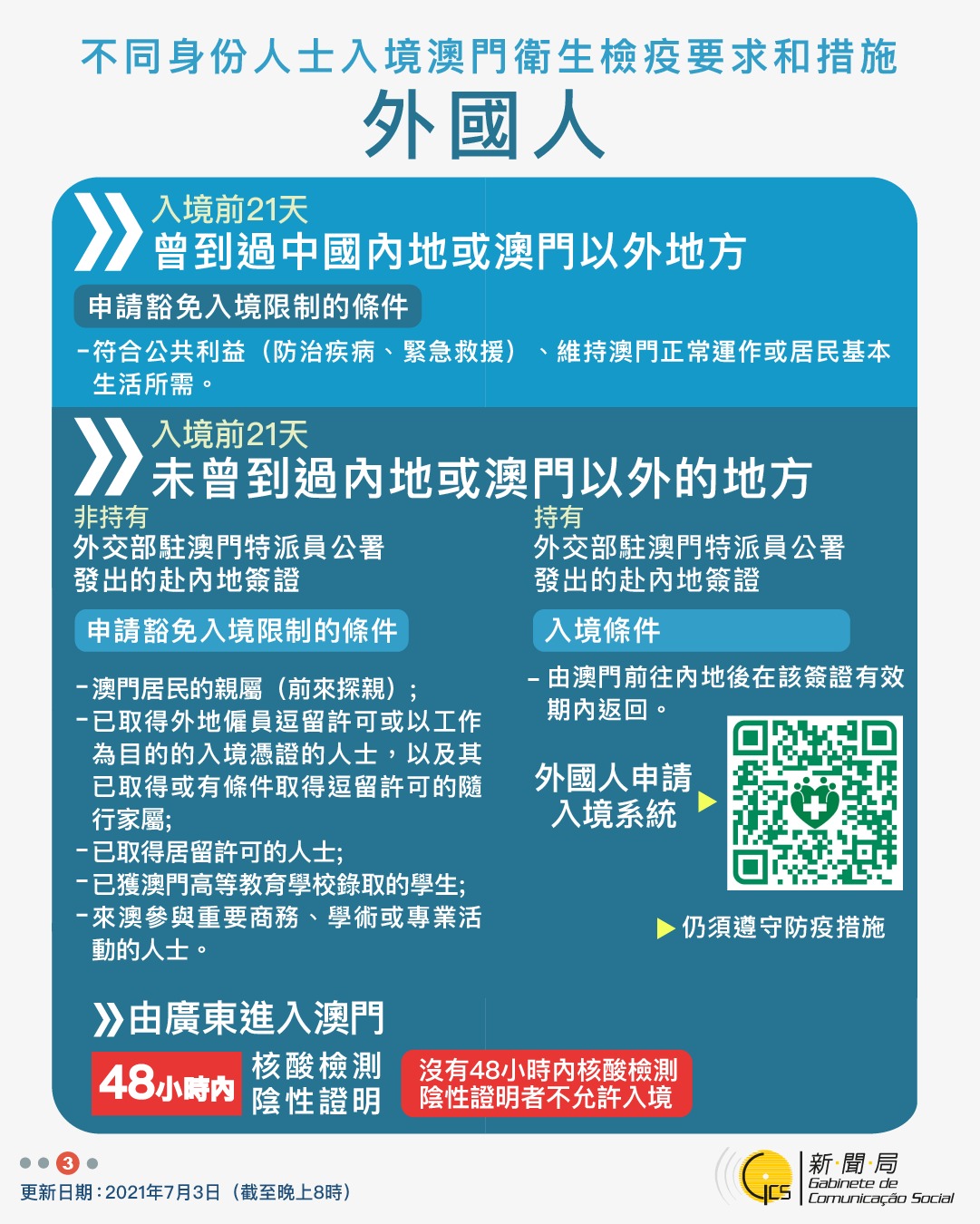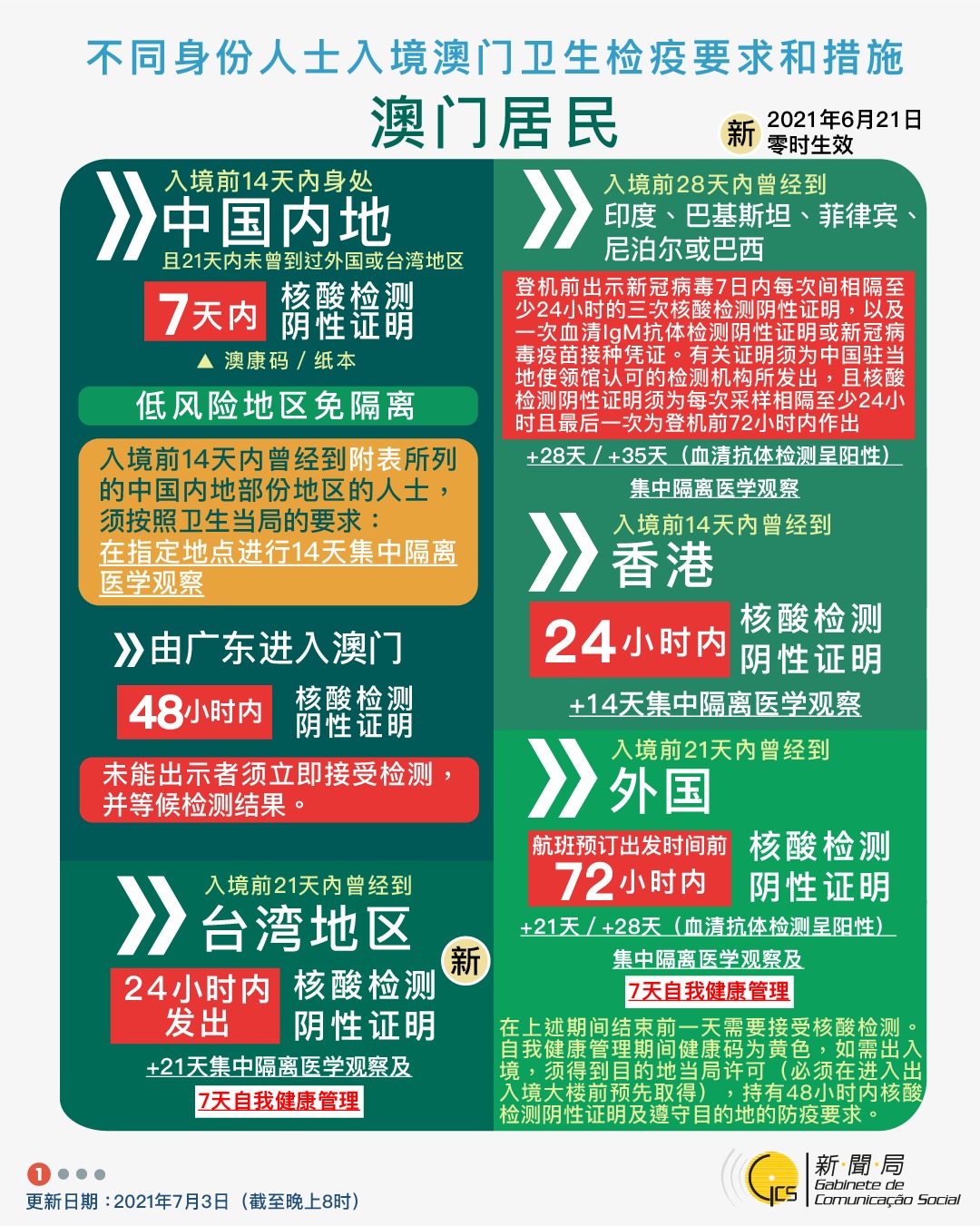 【圖文包】2021/7/3最新入境澳門衛生檢疫要求和措施