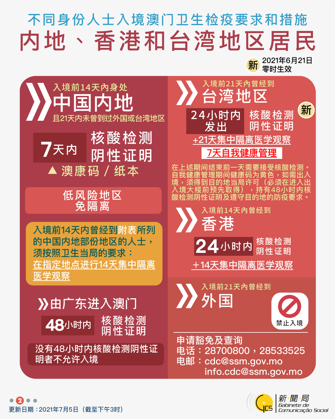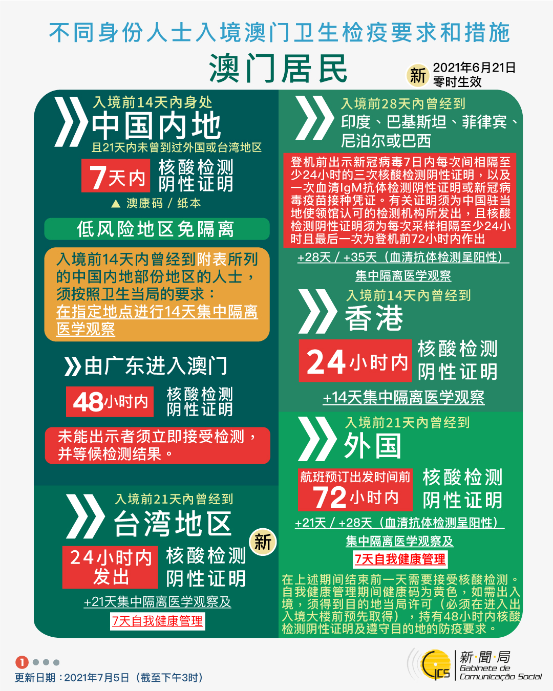 【圖文包】2021/7/5最新入境澳門衛生檢疫要求和措施