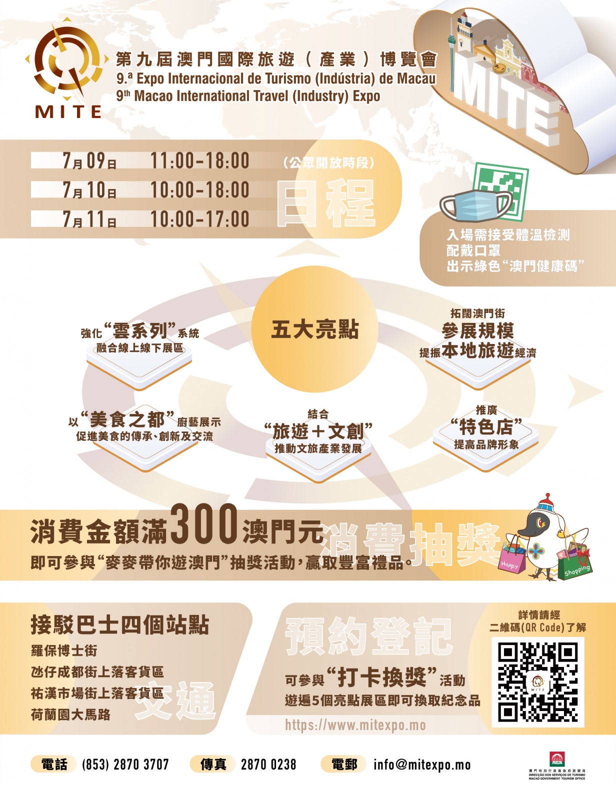 更多相關資訊,請瀏覽澳門國際旅遊(產業)博覽會網站www.mitexpo.mo、微信帳號及Facebook專頁。