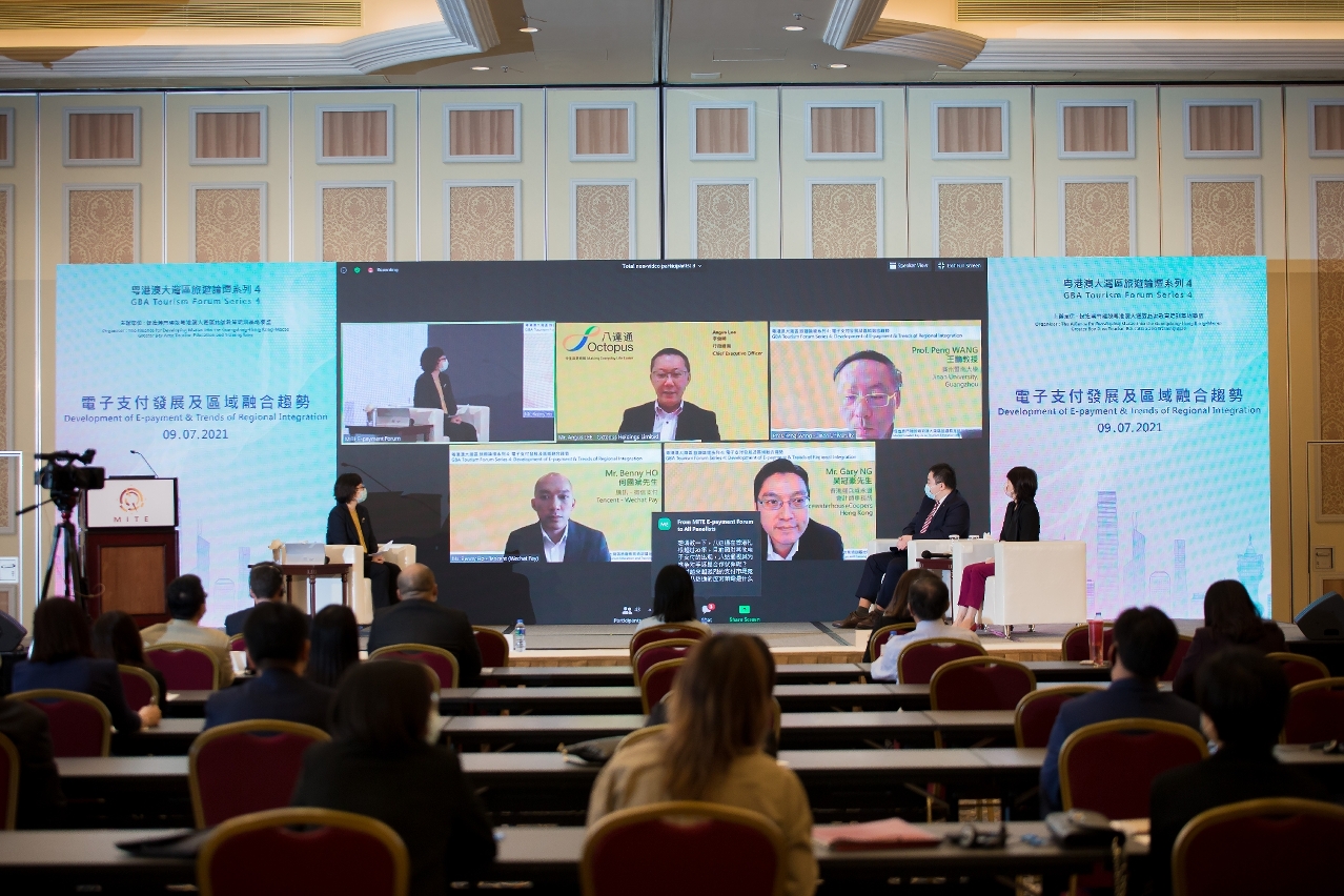 “促進澳門建設粵港澳大灣區旅遊教育培訓基地聯盟"在旅遊局的邀請下,於2021年7月9日在第九屆澳門國際旅遊(產業)博覽會期間舉辦“粵港澳大灣區旅遊論壇系列4:電子支付發展及區域融合趨勢”論壇。論壇於澳門威尼斯人會議中心那不勒斯廳舉行,共吸引百多名來自粵港澳大灣區政府代表、旅遊、餐飲、零售、金融業的管理層及高等院校師生透過線上或線下模式同步參與。