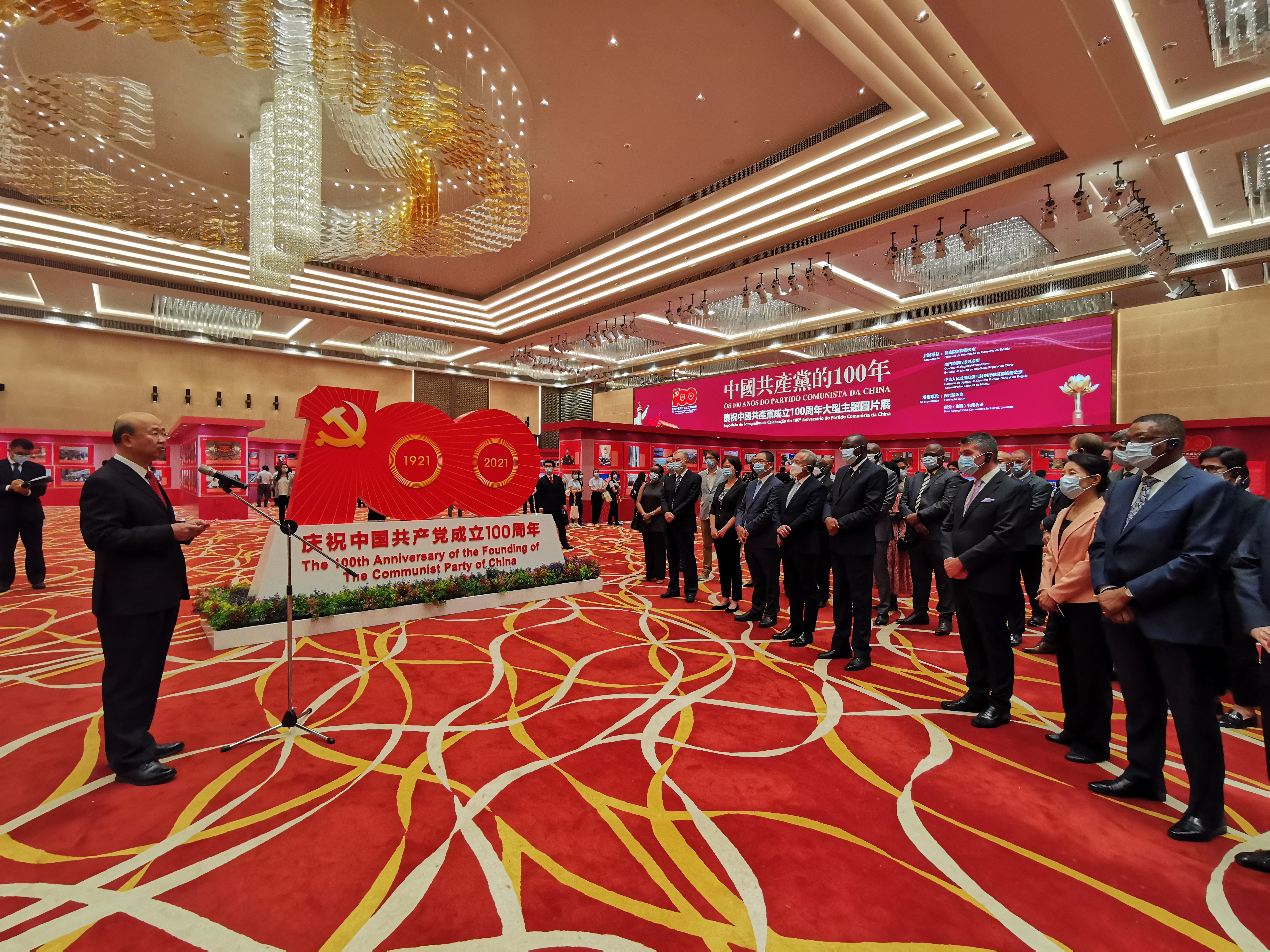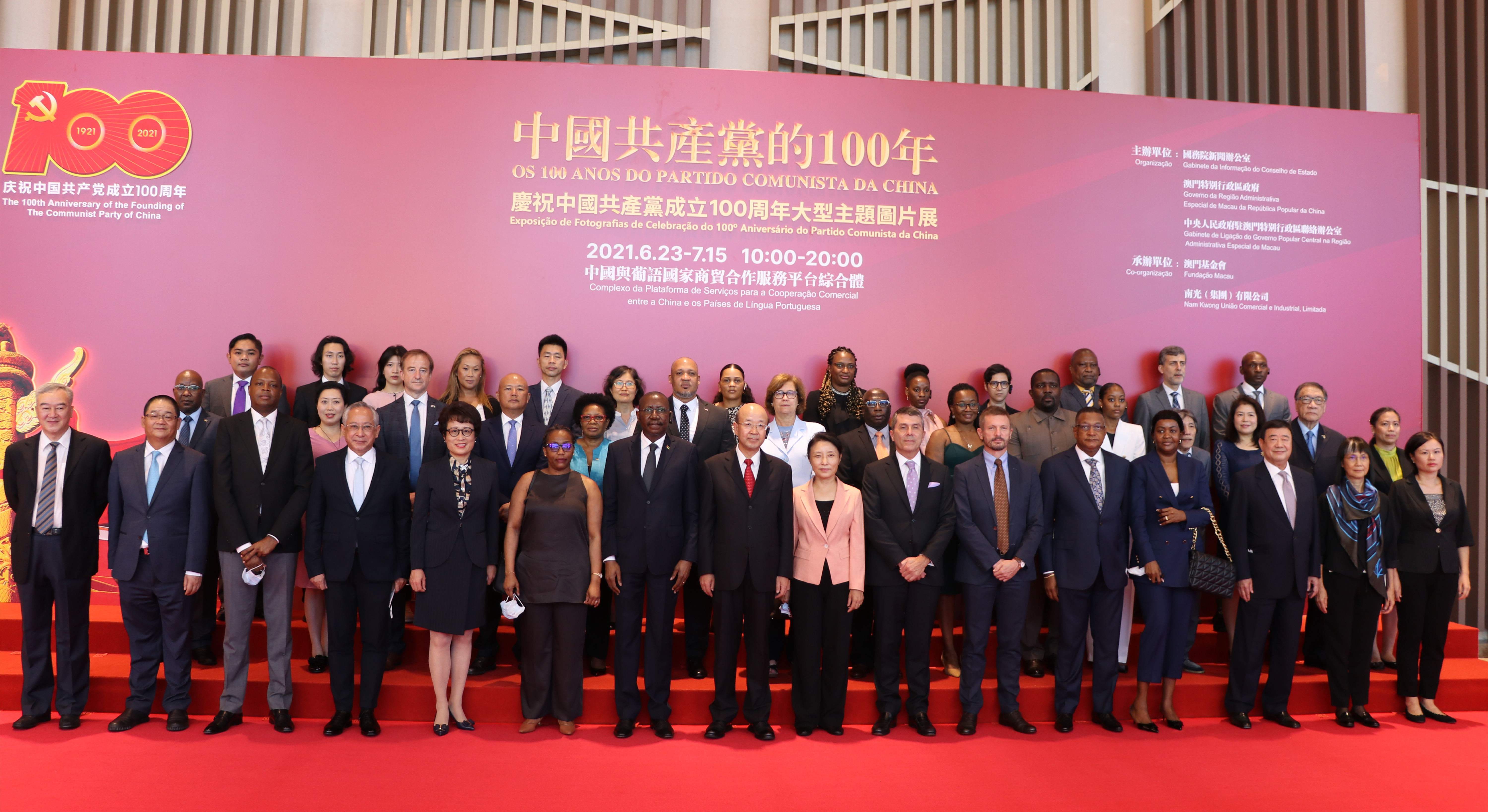 2021年7月12日下午,外交公署劉顯法特派員夫婦邀請外國駐澳總領事和國際機構負責人參觀“中國共產黨的100年——慶祝中國共產黨成立100周年大型主題圖片展”。莫桑比克總領事馬爾克斯、葡萄牙總領事歐冠溢、菲律賓總領事馬榮、安哥拉總領事賈理路,中葡論壇常設秘書處副秘書長贊東、莫桑比克代表範詩雅、佛得角代表米格爾、葡萄牙代表布思麗、幾內亞比紹代表馬立文、聖多美和普林西比代表施蒙格,聯合國大學軟件研究所所長黃京波、臺風委員會秘書長喻紀新,愛沙尼亞名譽領事廖澤雲、幾內亞比紹名譽領事陳明金、佛得角名譽領事周錦輝、尼日爾名譽領事蔣默涵、英國名譽領事Glenn James McCartney及部分家屬共60餘人應邀參加。公署副特派員王冬等陪同參觀。
