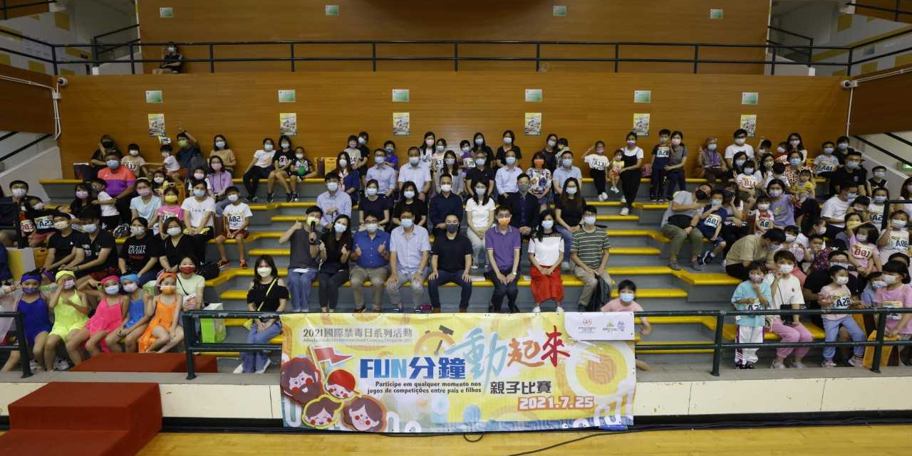 為響應國際禁毒日,由社會工作局與鮑思高青年服務網絡合辦的「Fun分鐘動起來親子比賽」,已於7月25日下午在中葡職業技術學校體育館舉行。基於防疫需要,場內嚴格執行各項防疫措施。