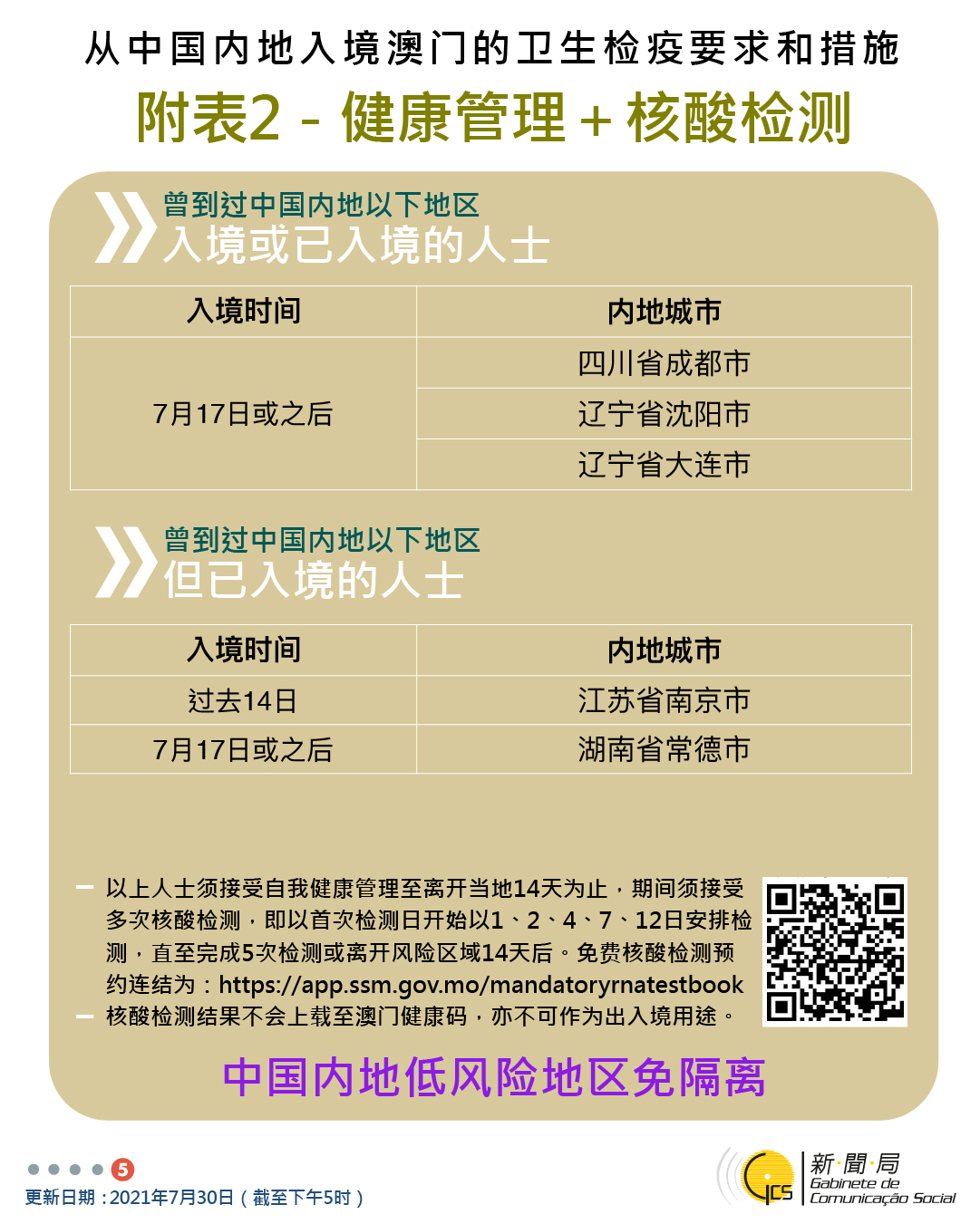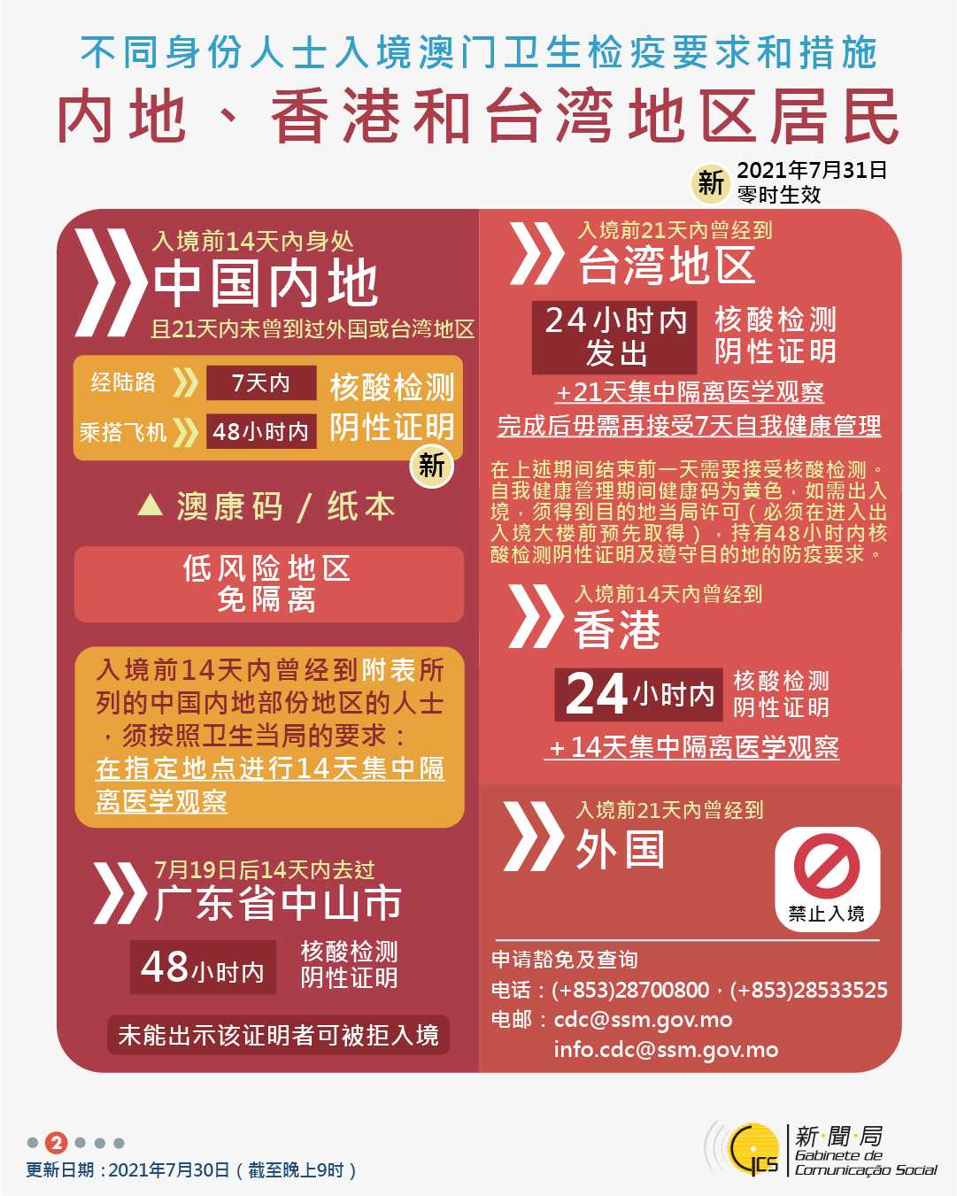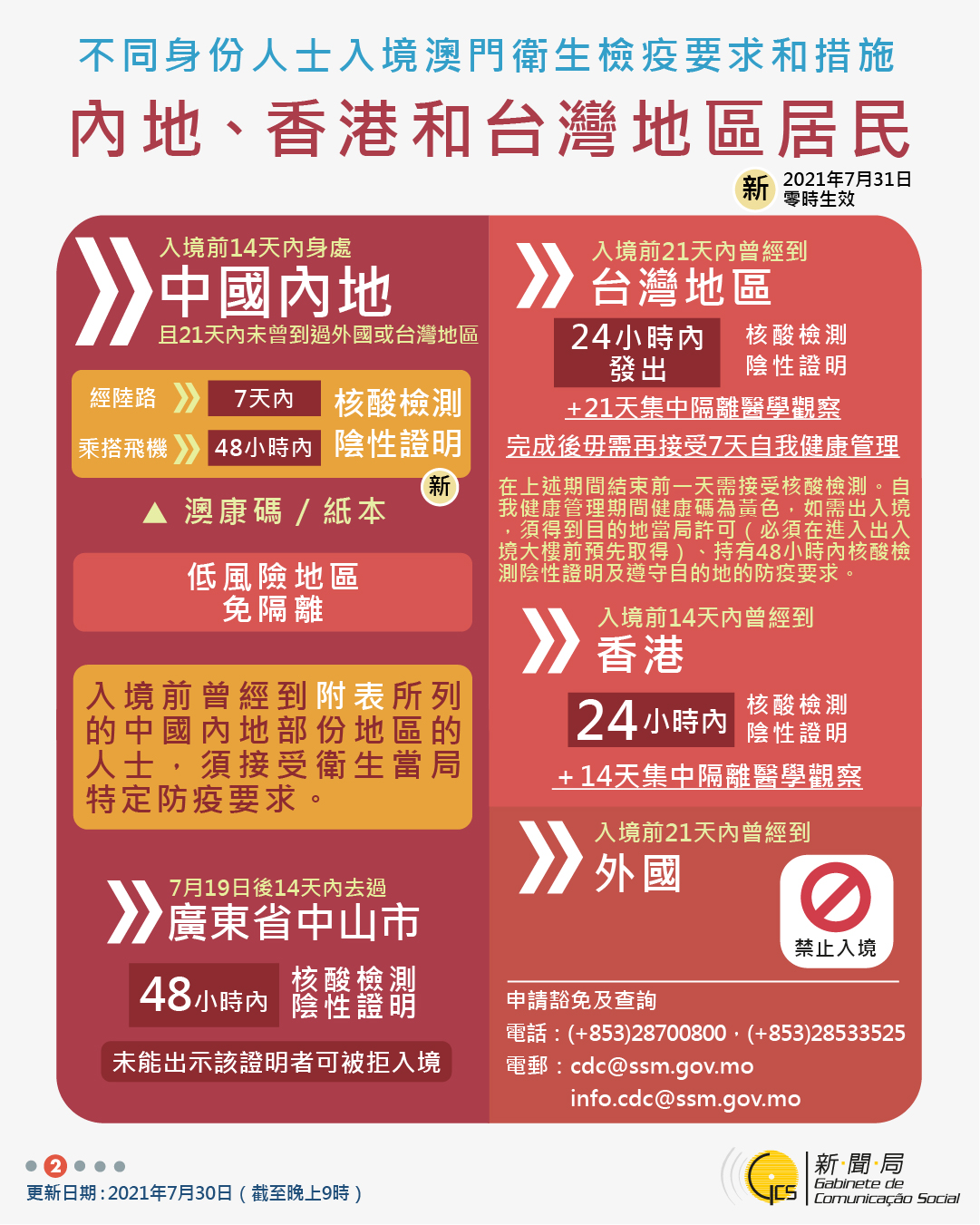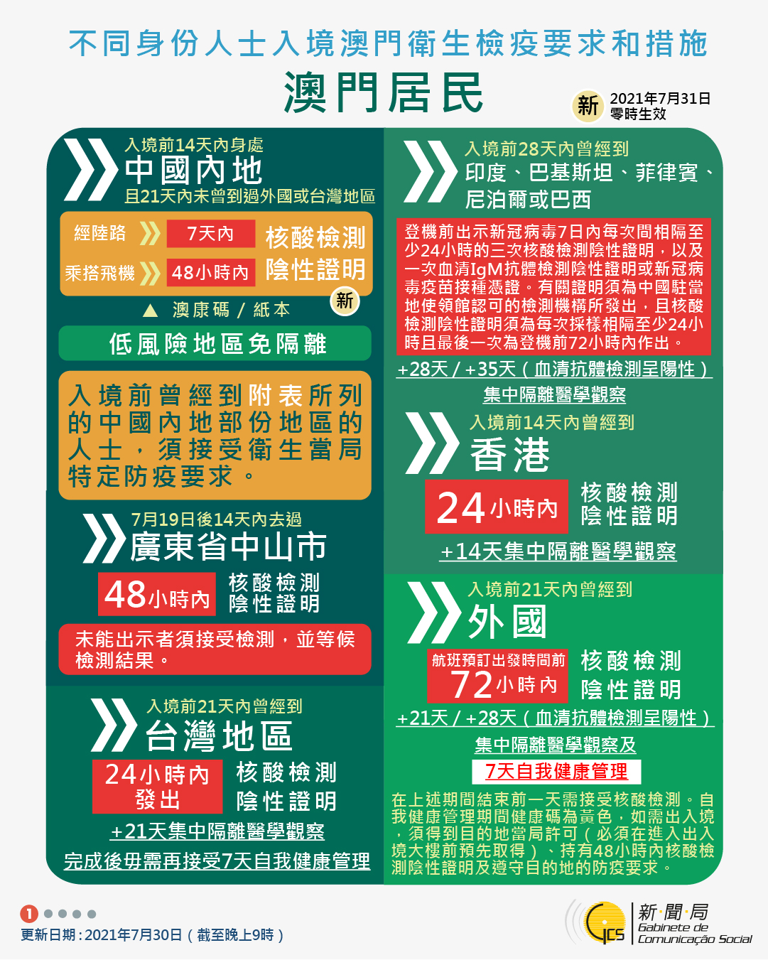【圖文包】2021/7/30最新入境澳門衛生檢疫要求和措施