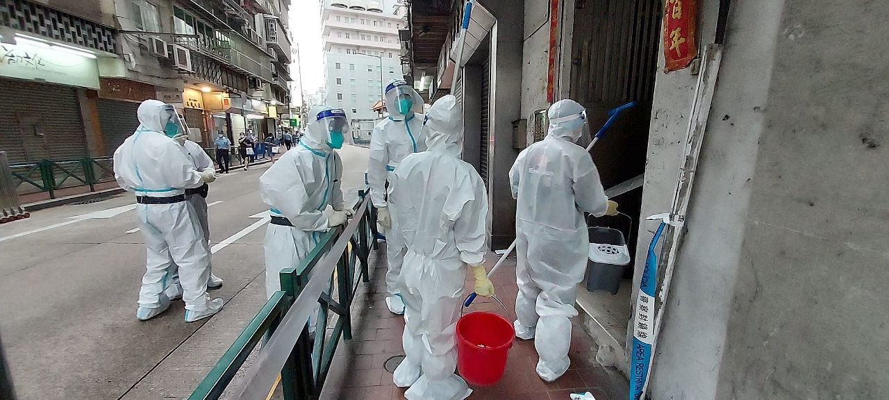 因應新型冠狀病毒感染的最新情況並配合防控工作,市政署今日(8月3日)即時協調清潔專營公司及外判清潔加派人手,於確診病例居所周邊街道、大廈公用部份,同時亦對確診病例工作場所及其周邊公共區域進行大型清潔及消毒工作,盡力減低傳染病傳播的條件。