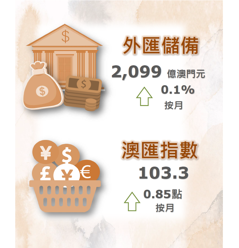 澳門金融管理局今日公佈,2021年7月底澳門特別行政區的外匯儲備資產總額,初步統計為2,099億澳門元(262.2億美元),較2021年6月經修訂總額2,098億澳門元(262.3億美元),上升了0.1%。2021年7月底的外匯資產總額,約相當於2021年6月底澳門流通貨幣的11倍或廣義貨幣供應(M2)中屬於澳門元部份的86.2%。