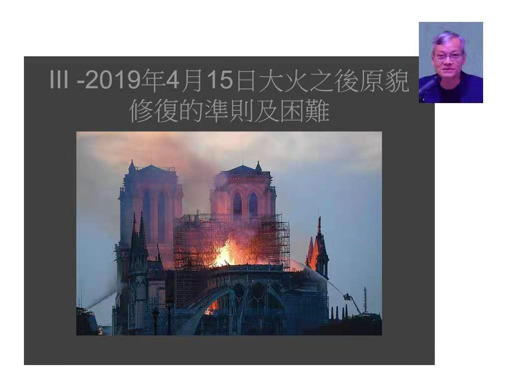 呂博士是澳門註冊建築師,法國文化遺產建築師及本地知名藝術家,他向聽眾介紹了聖母院自建造至超過八個世紀的變遷與自19世紀中的修復過程,由於聖母院在2019年4月15日的大火中受損嚴重,不同領域的文物專家正合力對其進行原貌修復。呂博士的內容深入淺出,聽眾了解世遺建築修復的準則及需考慮的各種因素後反應積極,並踴躍提問。