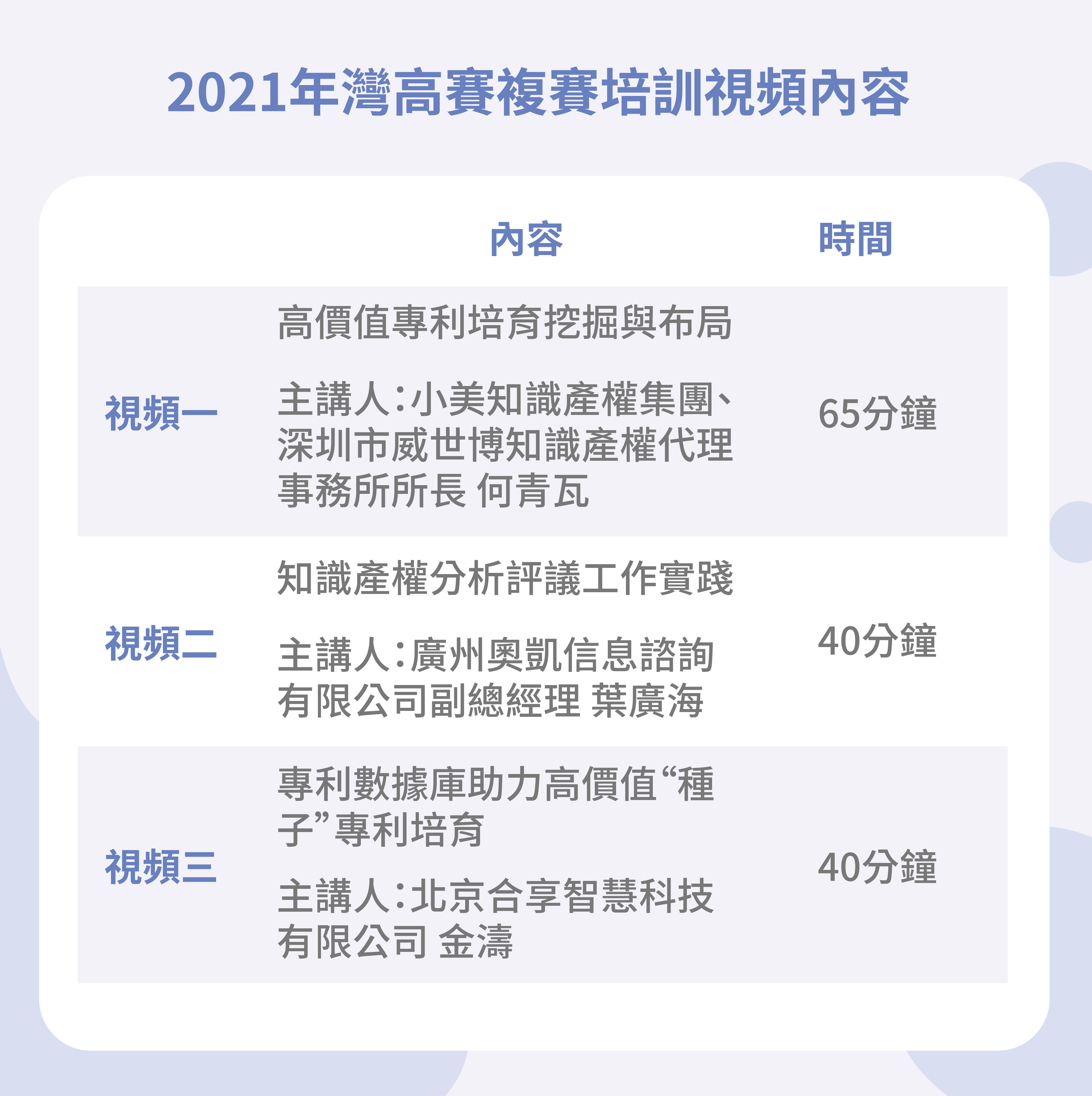 由廣東省知識產權局、香港特別行政區政府知識產權署、澳門特別行政區政府經濟及科技發展局和佛山市人民政府共同主辦的“2021年粵港澳大灣區高價值專利培育布局大賽”複賽分組百強名單已誕生。大賽體現賽訓結合精神,為進入百強選手提供複賽培訓。是次培訓以高價值專利培育布局為主題,結合知識產權價值評估、專利數據庫的作用及意義、高價值專利轉化和運營等方面,重點介紹高價值專利培育布局策略與思路。