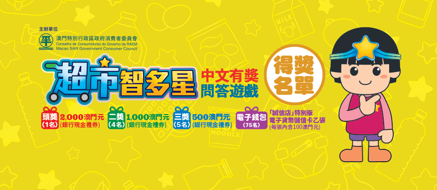 消費者委員會舉辦的「超市智多星」有獎問答遊戲得獎名單已上載至消委會網頁 (www.consumer.gov.mo) ,領獎時間由9月13日至10月15日。