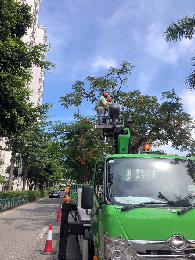 同時,市政署亦檢查及修剪構成安全隱患的樹木或斷枝,避免對途人或駕駛者造成危險。連日來已修剪了各個投票站周邊的行道樹。市政署呼籲大雨及颱風天氣下,市民應避免在樹下逗留,以免樹木枝條因受水負重增加出現折斷而發生意外。