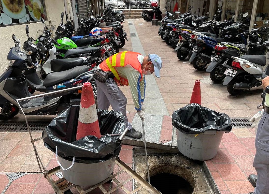為保障公共渠網的排洪能力,市政署優先安排渠務人員及外判承辦商對位處低窪區域的下水道進行檢查及疏通,重點工作區域包括位於下環、新橋、內港林茂塘區、台山、黑沙環等區域的投票站周邊,同時對該區集水井等加強排查及清疏,並按實際需要進行防範性清理,避免淤塞。