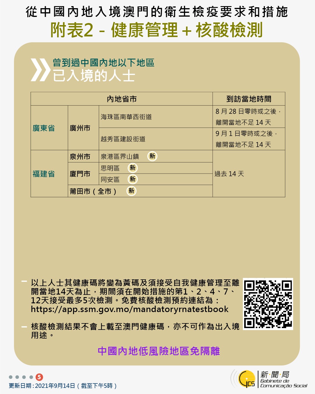 【圖文包】2021/09/14最新入境澳門衛生檢疫要求和措施