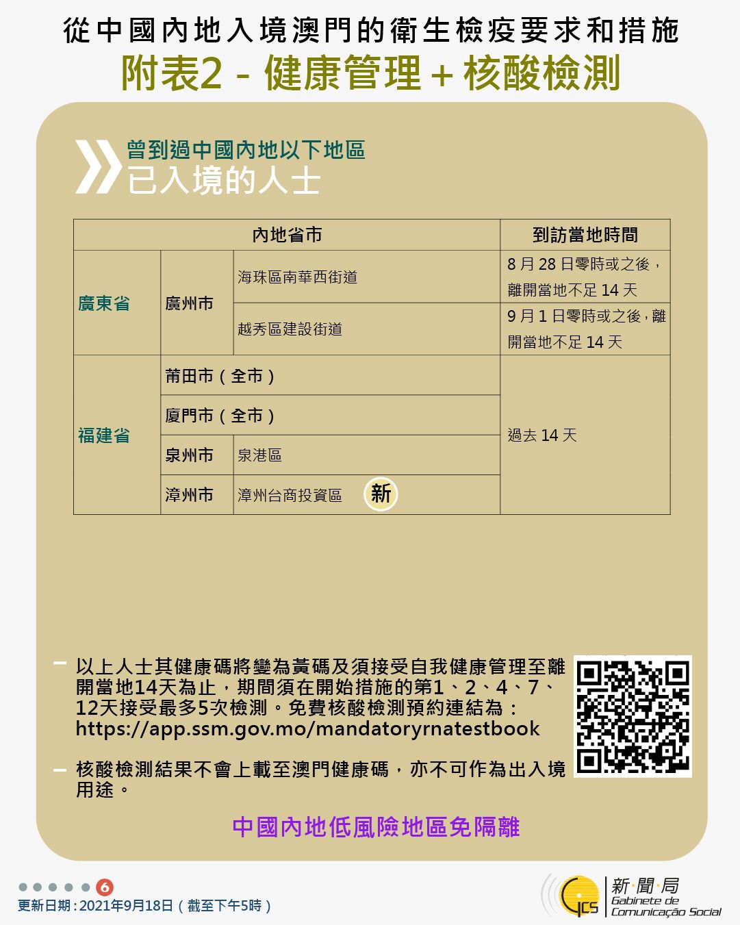 【圖文包】2021/09/18最新入境澳門衛生檢疫要求和措施