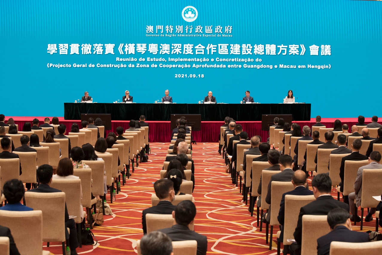 行政長官表示,9月5日《橫琴粵澳深度合作區建設總體方案》的正式發佈,進一步明確了粵澳合作的新高地,賦予了澳門在國家發展和“一國兩制”深化實踐的新任務,澳門要如何做好深合區這篇“大文章”,需與廣東省一起努力,也需要澳門特區政府全體人員的共同努力。《總體方案》將引領澳門的發展踏上新台階,特區各公共部門人員要認真學習丶準確把握和貫徹落實《總體方案》,各司其職、積極投入,執行好《總體方案》的各項工作。