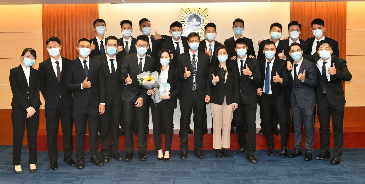 司法警察局於2021年9月23日在總部大樓舉行“第20屆實習刑事偵查員培訓課程”結業典禮及簽約儀式,40名學員完成五個多月的培訓課程,獲頒發結業證書,並在薛仲明局長、杜淑森和陳堅雄兩位副局長,以及各部門主管的見證下,簽約成為實習刑事偵查員,隨即被分派到多個刑偵附屬單位展開為期一年的實習,參與各項執法實務工作。為配合特區政府防疫工作,全部出席人員均做好防疫措施。