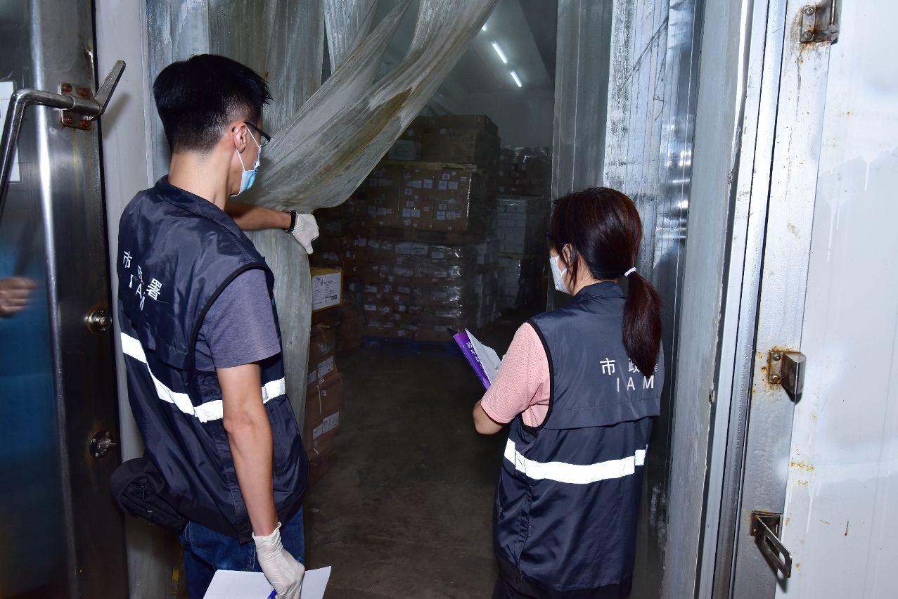 因應新冠疫情發展,市政署不斷強化冷鏈及鮮活食品進口之防控措施,近日加大巡查力度,並且嚴格要求冷鏈食品入口商登錄“冷鏈食品追溯系統”,以及人員出入工作場所登記。同時要求批發市場商戶切實執行防疫指引,保障人員健康及批市運作秩序。市政署會積極與業界密切溝通,監督和協助業界嚴格落實各項防疫措施及責任。如發現有不符合衛生防疫要求者,市政署會即時暫緩其入口申請。