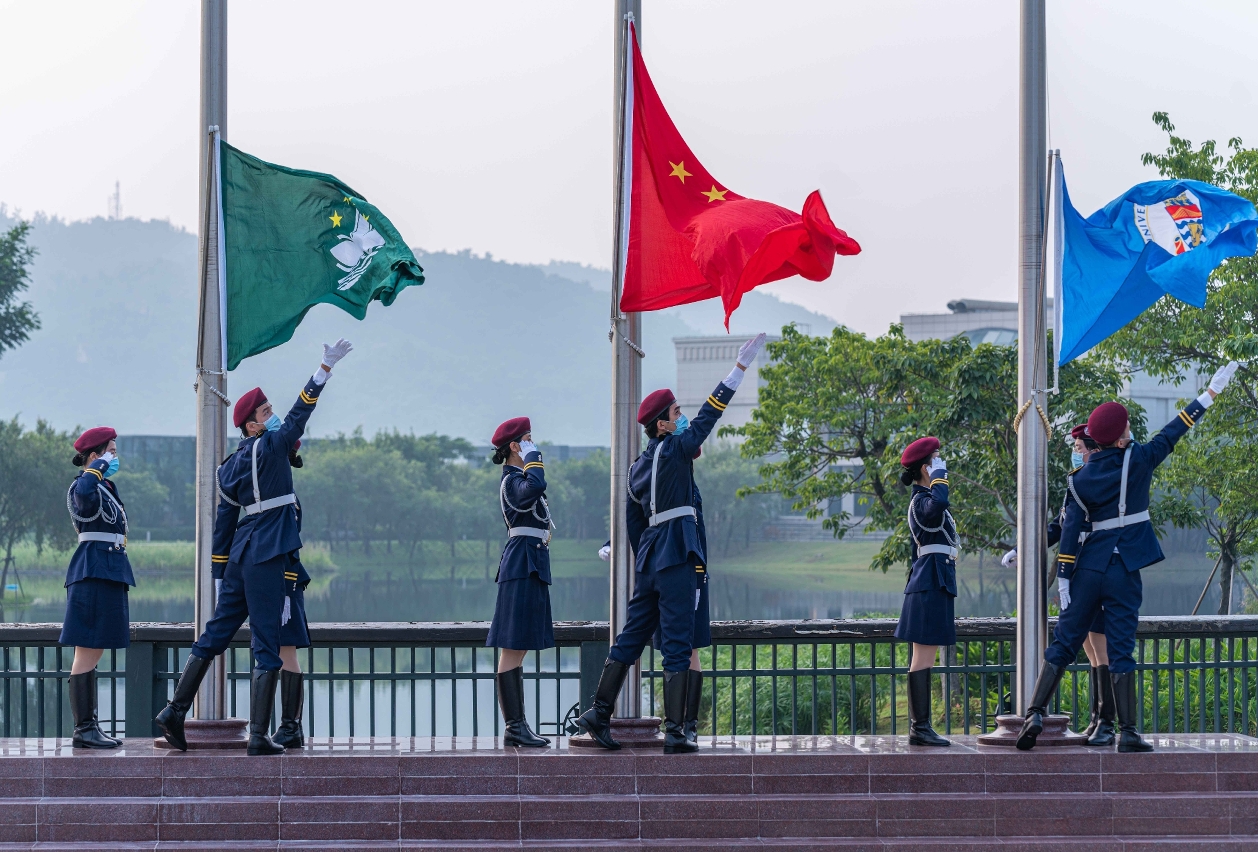 為慶祝中華人民共和國成立72周年,澳門大學國旗儀仗隊今(1)日在該校蓮花廣場舉行升旗儀式,向國家送上祝福,場面隆重。