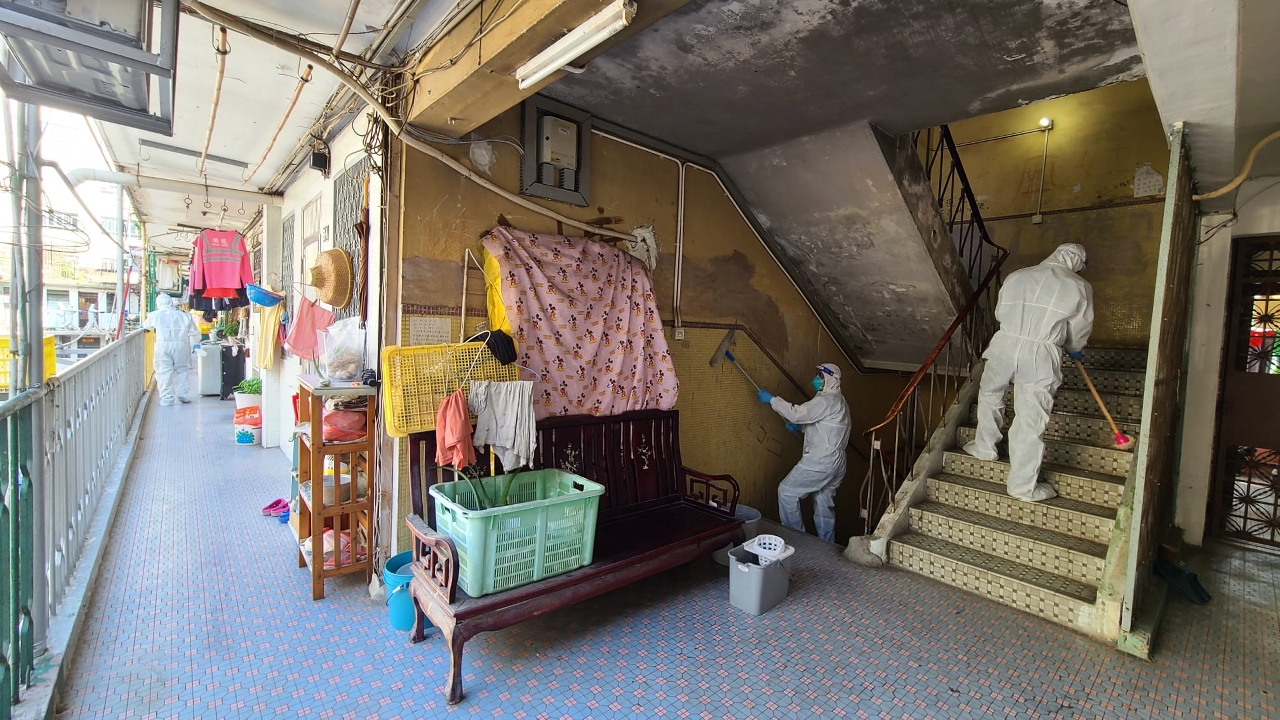 因應新型冠狀病毒感染的最新情況並配合防控工作,市政署即時協調清潔專營公司及外判清潔加派人手,於10月5日對第75例確診病例之居所周邊街道、大廈公用部份等區域進行大型清潔及消毒工作,盡力減低傳染病傳播的條件。