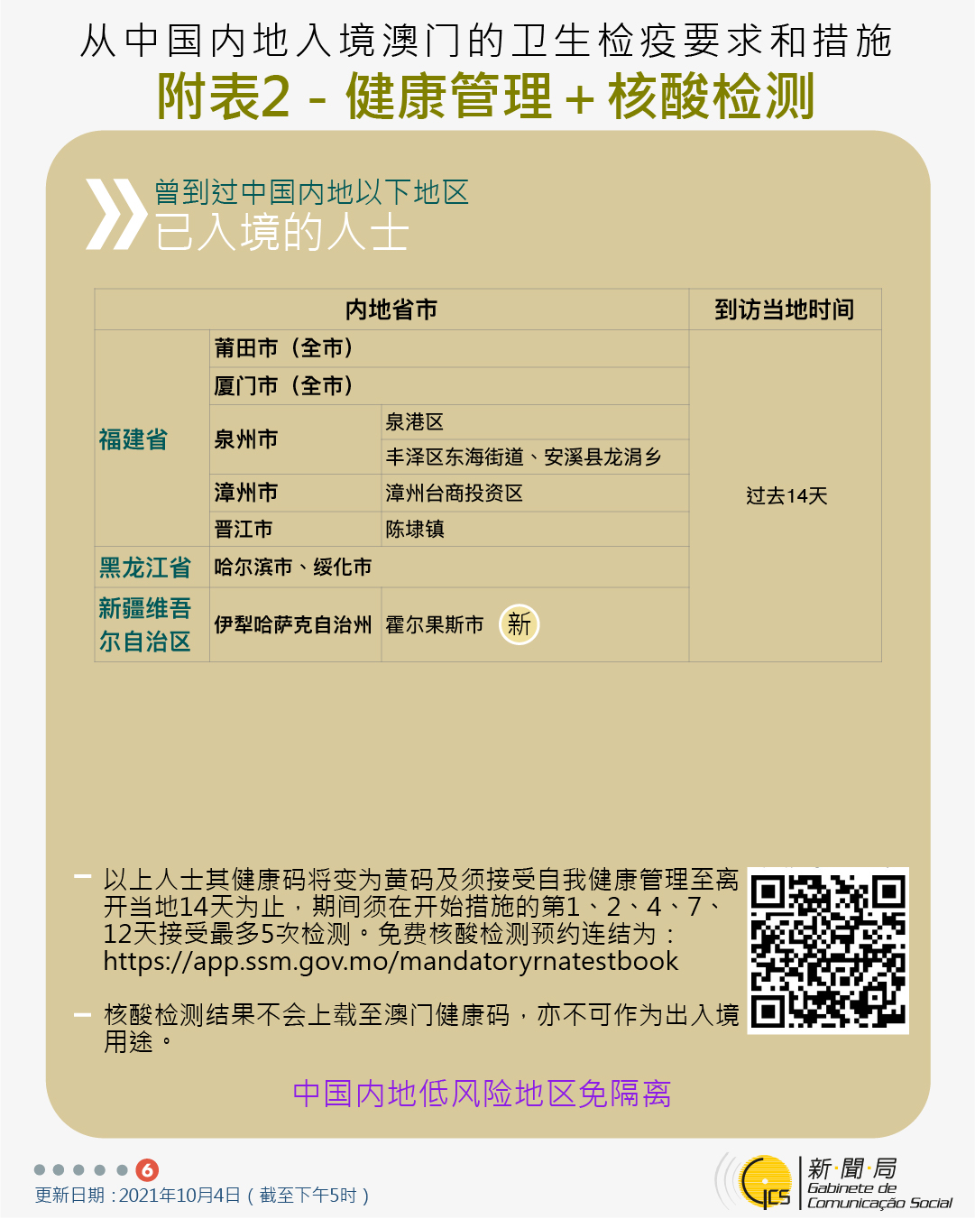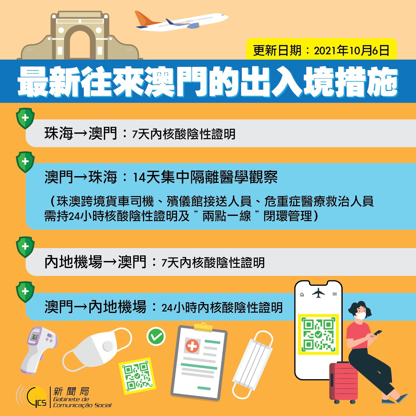 10月6日最新往來澳門的出入境措施