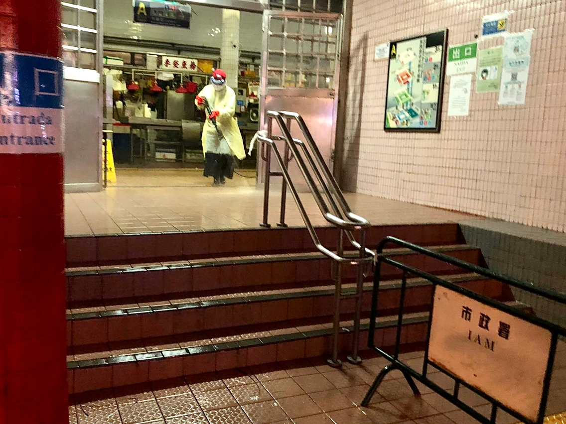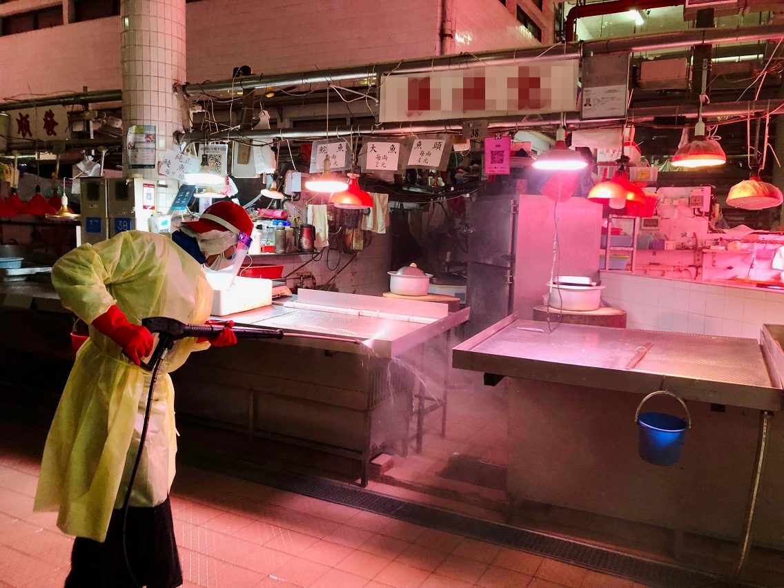 因應應變協調中心早前公佈新冠肺炎確診個案的活動軌跡,市政署在得悉後,已按照衛生指引即時對涉事的祐漢街市進行大型全面清潔和消毒。以熱水壓力機清洗街市內部以及門前地方、升降機、樓梯間,以及扶手等公共設施,盡力減低傳染病在社區傳播的條件。