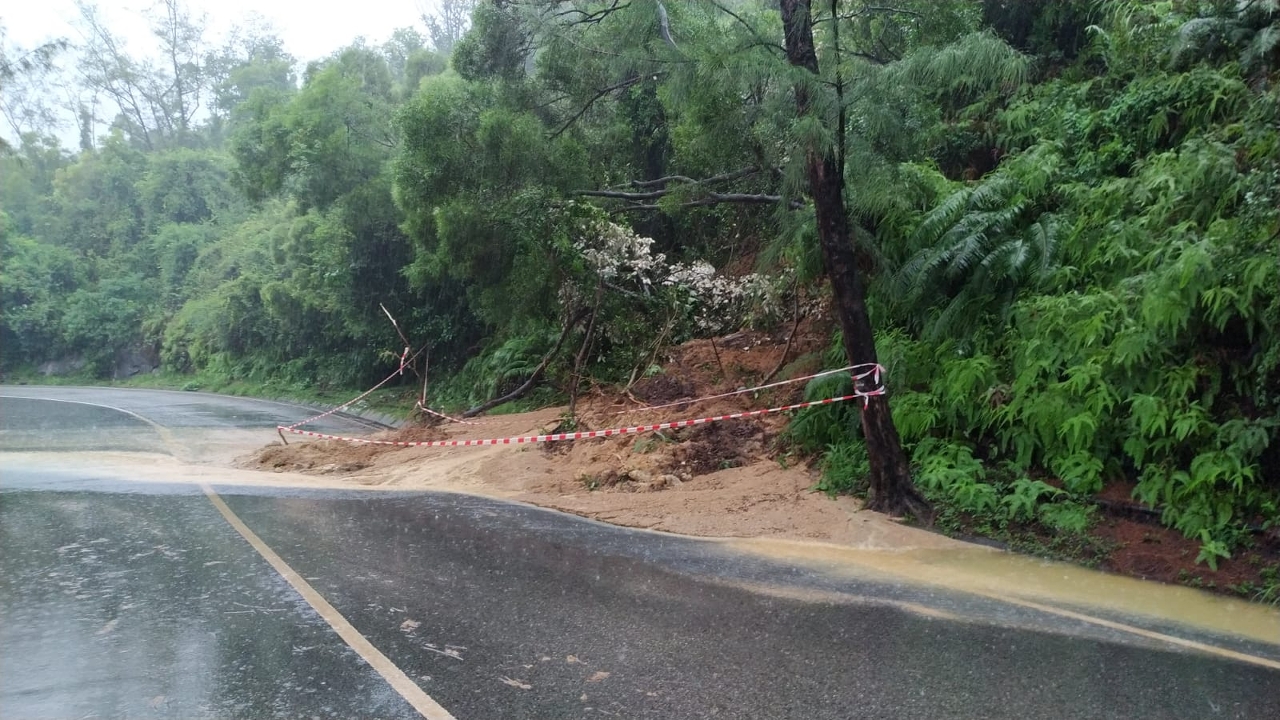 氣象局今(10月10日)早先後發出黃色及紅色暴雨警告信號,持續暴雨沖刷山體,水土流失讓路環多處地點發生山泥傾瀉,包括鄉村馬路、黑沙馬路、竹灣馬路及雞頸馬路等多處地點出現不同程度的山泥傾瀉,有部分範圍較大甚至覆蓋整條行車路面,市政署已即時派員聯同相關政府部門進行清理及圍護,出動重型機械進行清理,首要開通主要行車道,減少對交通造成阻礙,目前有部分路段已陸續臨時貫通,清理工作正持續進行。