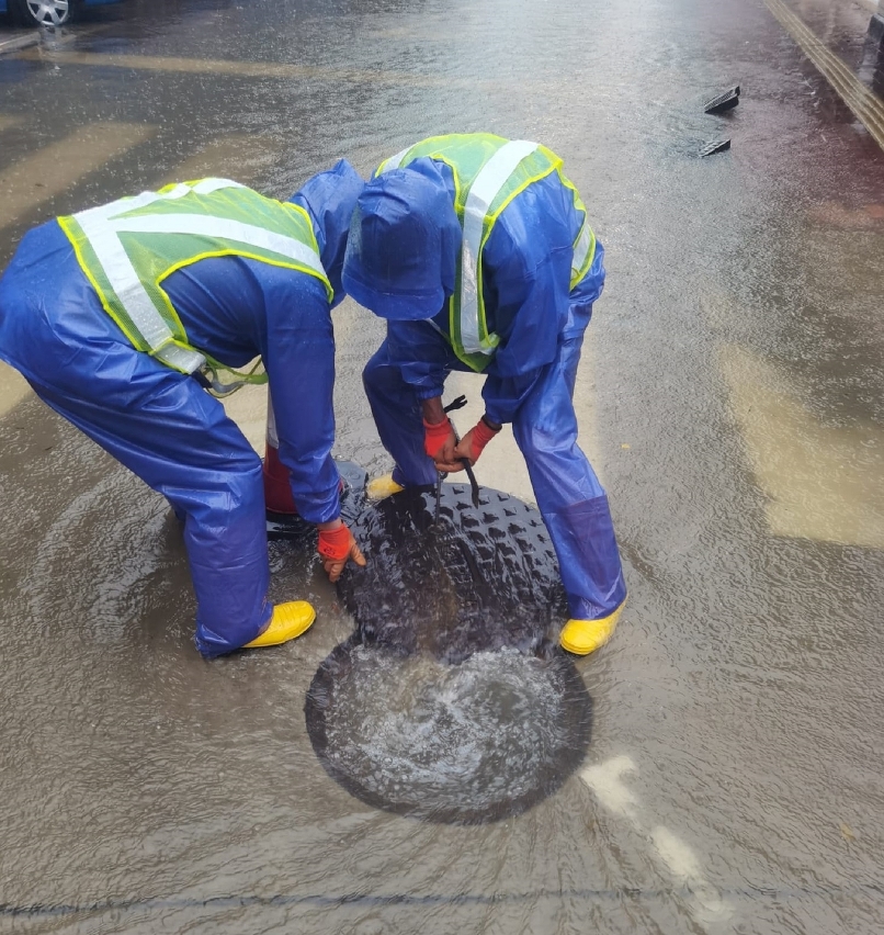 市政署啟動暴雨緊急應變小組機制,派員到各水浸黑點清理路邊雨水井沖積的垃圾,並在安全情況下打開渠蓋,加快下水道排洪能力。
