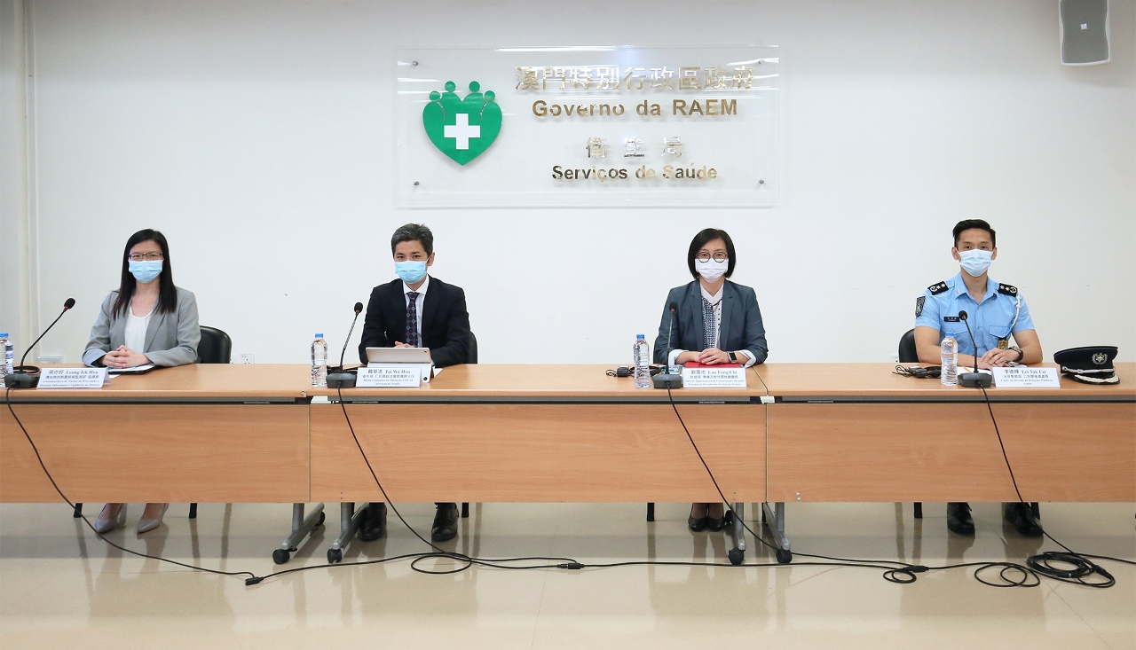 新型冠狀病毒感染應變協調中心(下稱應變協調中心)於今(11)日舉行記者會,仁伯爵綜合醫院戴華浩醫務主任、旅遊局傳播及對外關係廳劉鳳池廳長、治安警察局公共關係處李德輝處長及疾病預防控制中心傳染病防制暨疾病監測部梁亦好協調員共同會見傳媒。