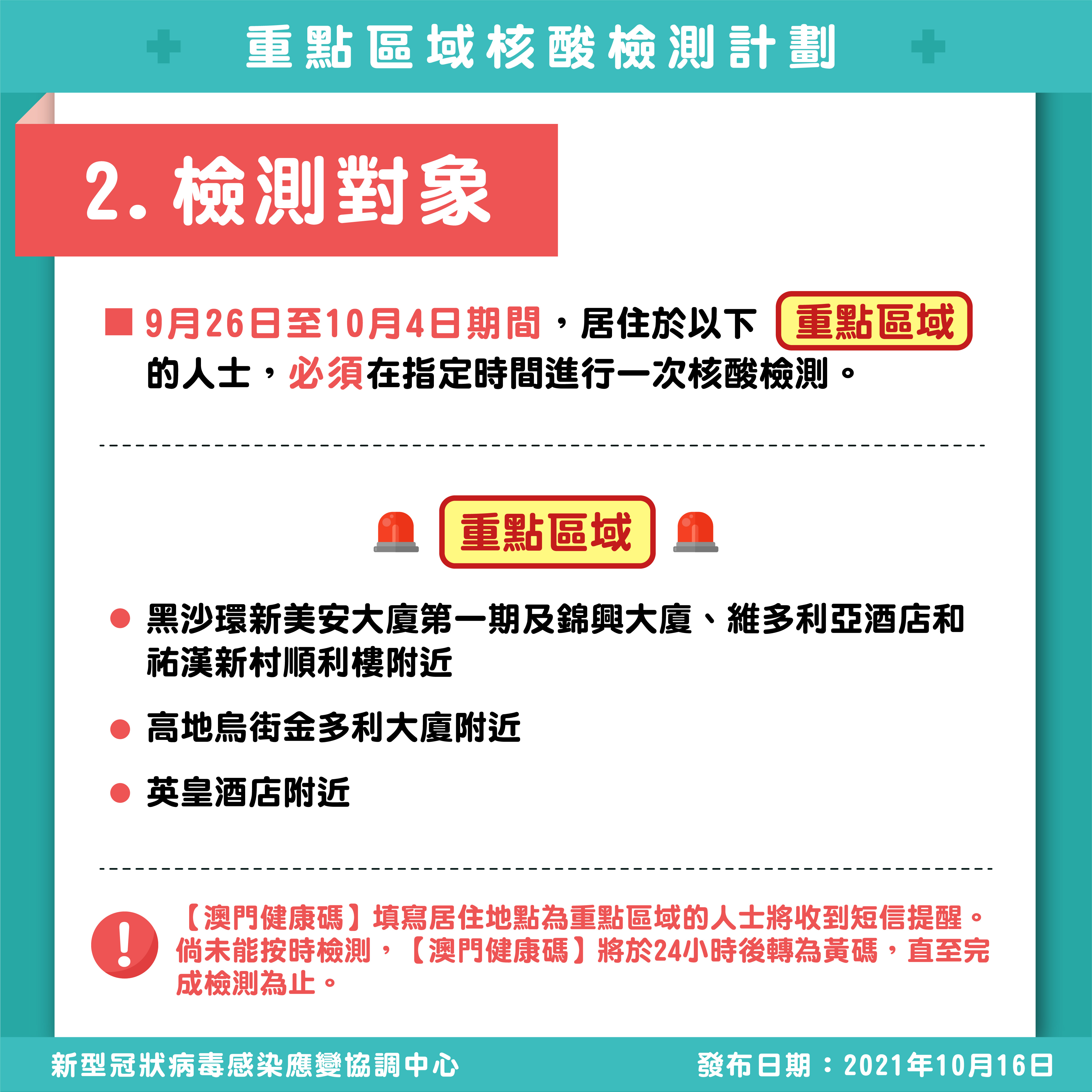 【圖文包】10月17日展開重點區域核酸檢測計劃