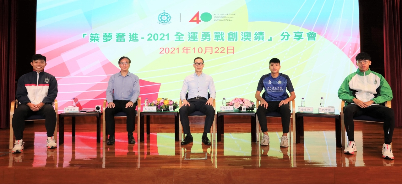 澳門理工學院健康科學及體育高等學校於2021年10月22日以線上方式舉辦“澳門理工學院四十週年校慶活動:‘築夢奮進-2021全運勇戰創澳績’分享會”,是次分享會吸引了眾多師生及運動愛好者參與,氣氛熱烈,會上介紹了大型體育比賽的備戰情況,包括賽前調整和適應、比賽細節及應對方法,以及運動員分享參加第十四屆全國運動會的經驗。