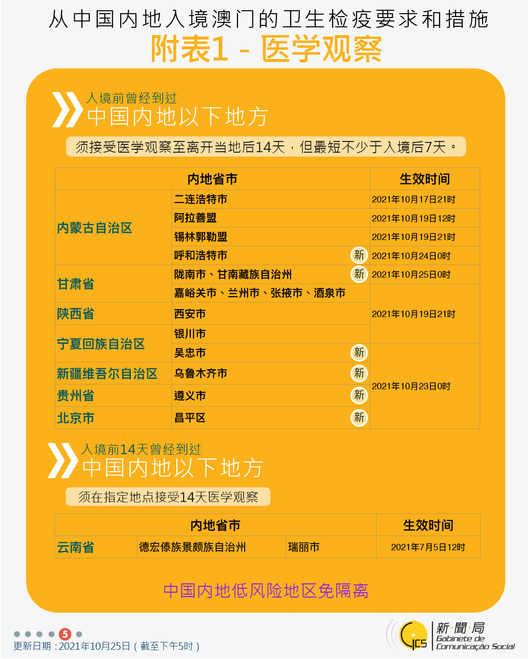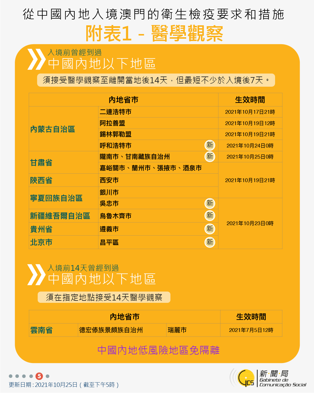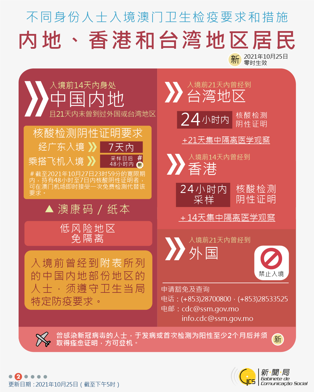 【圖文包】2021/10/25最新入境澳門衛生檢疫要求和措施