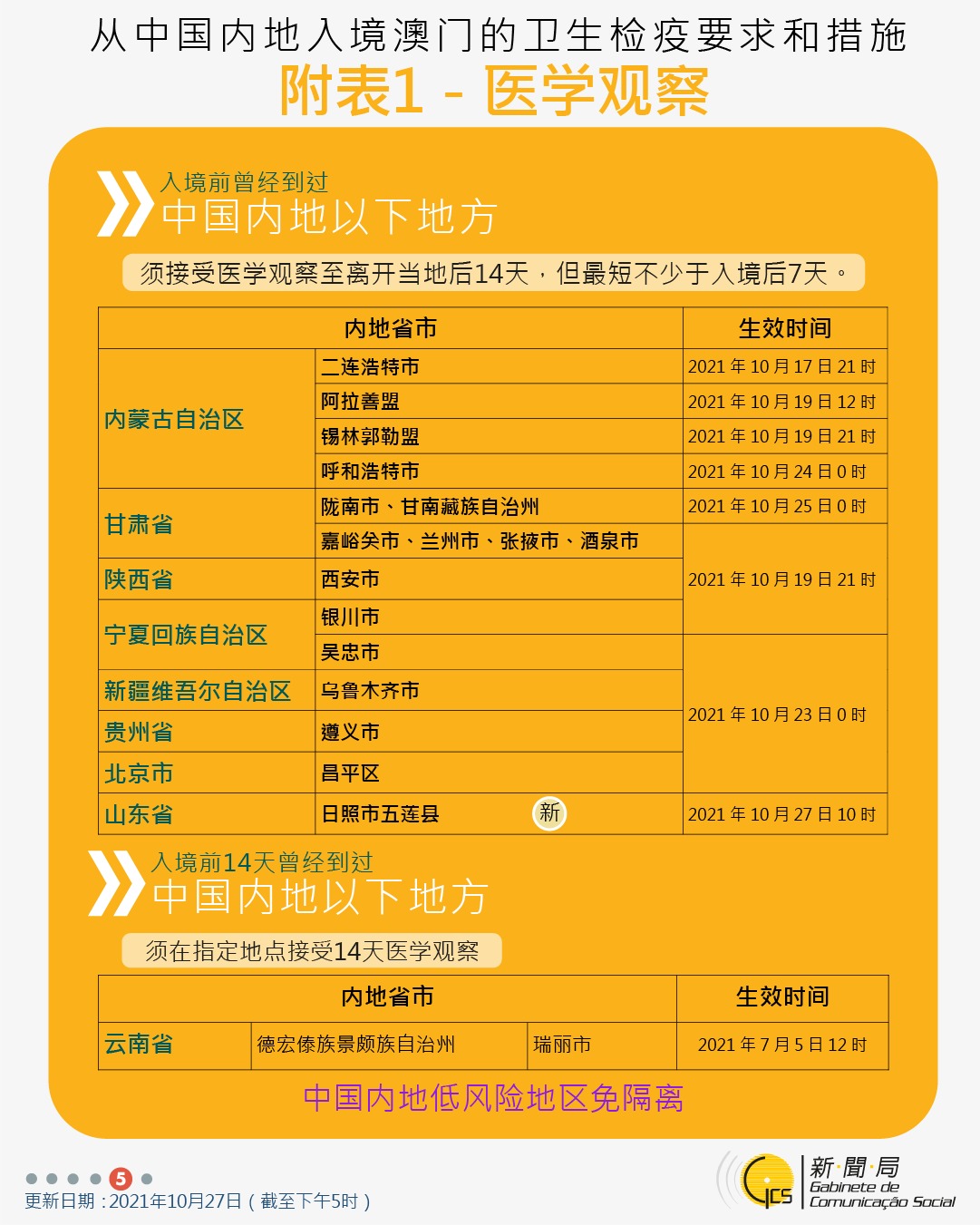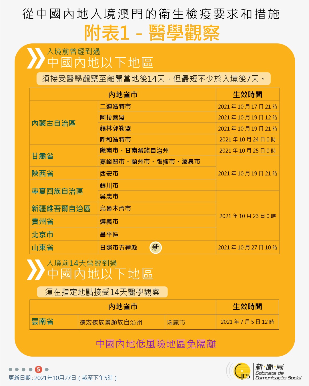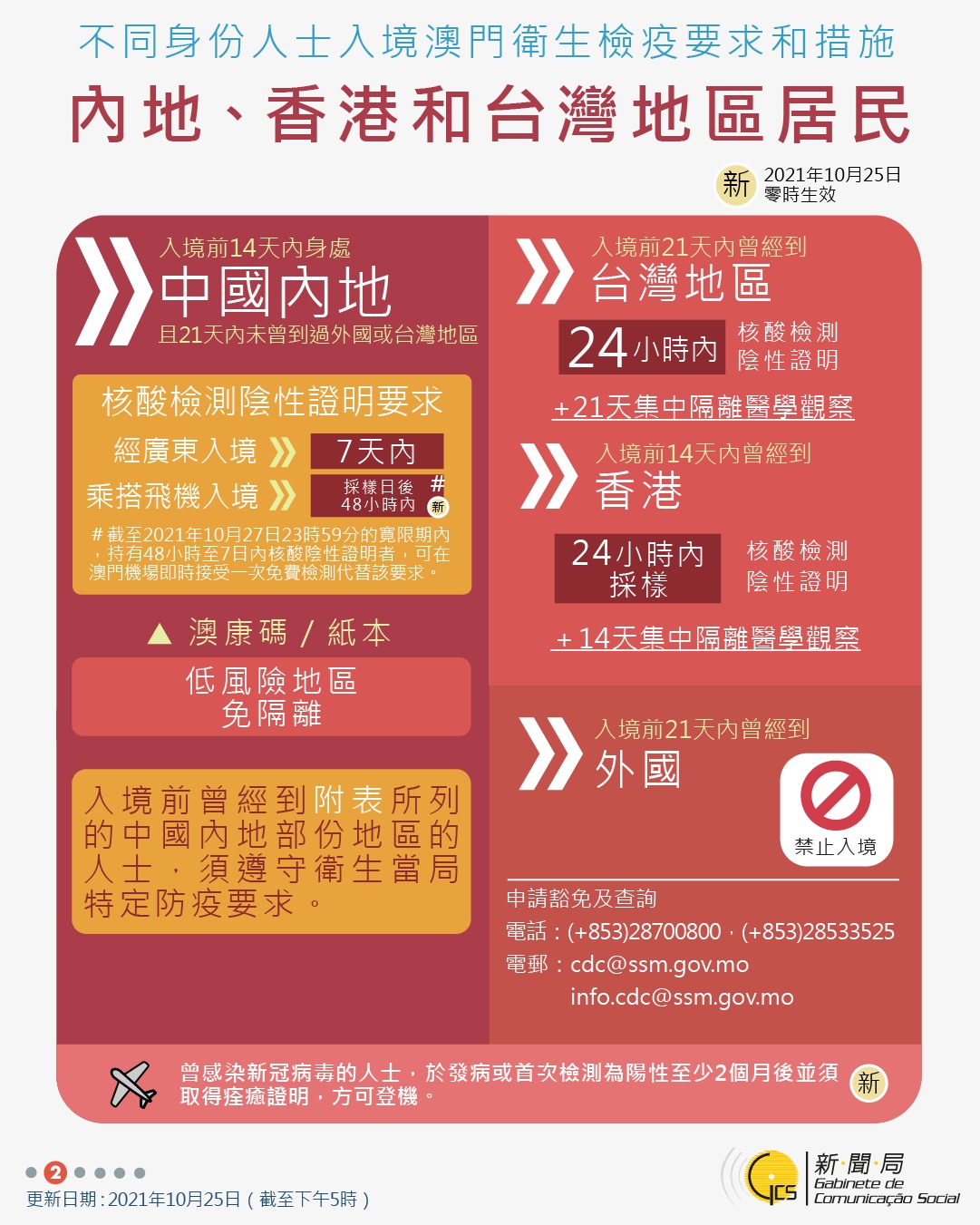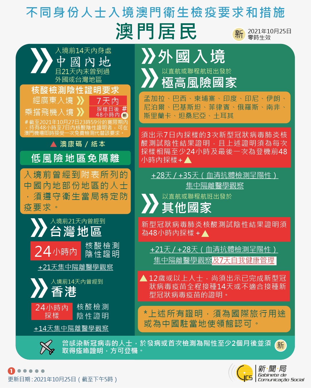 【圖文包】2021/10/27最新入境澳門衛生檢疫要求和措施