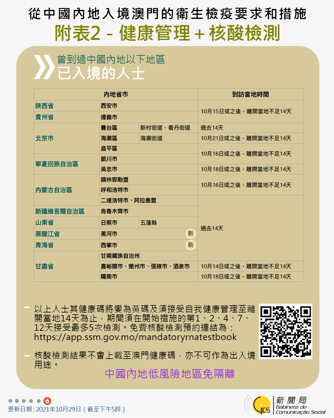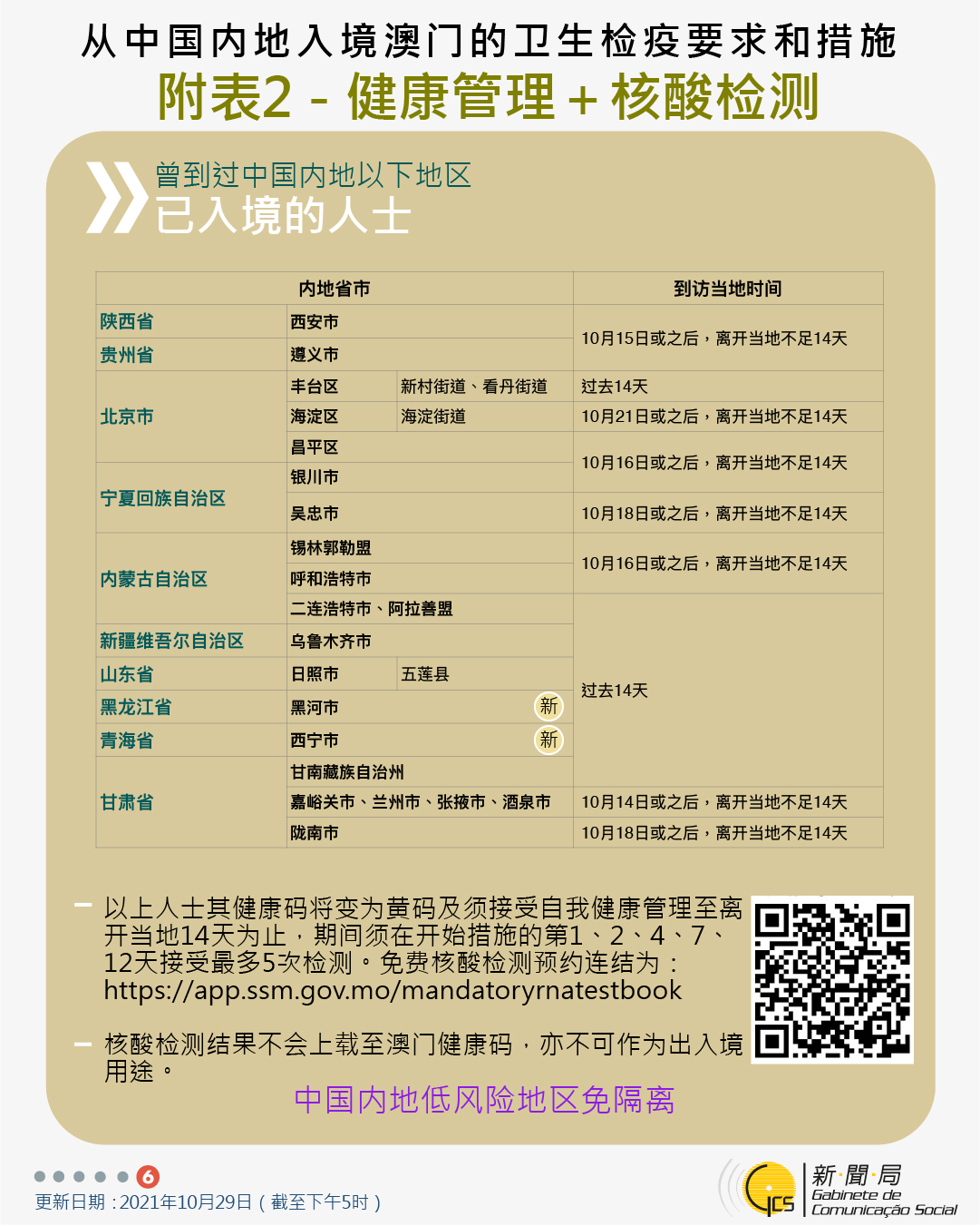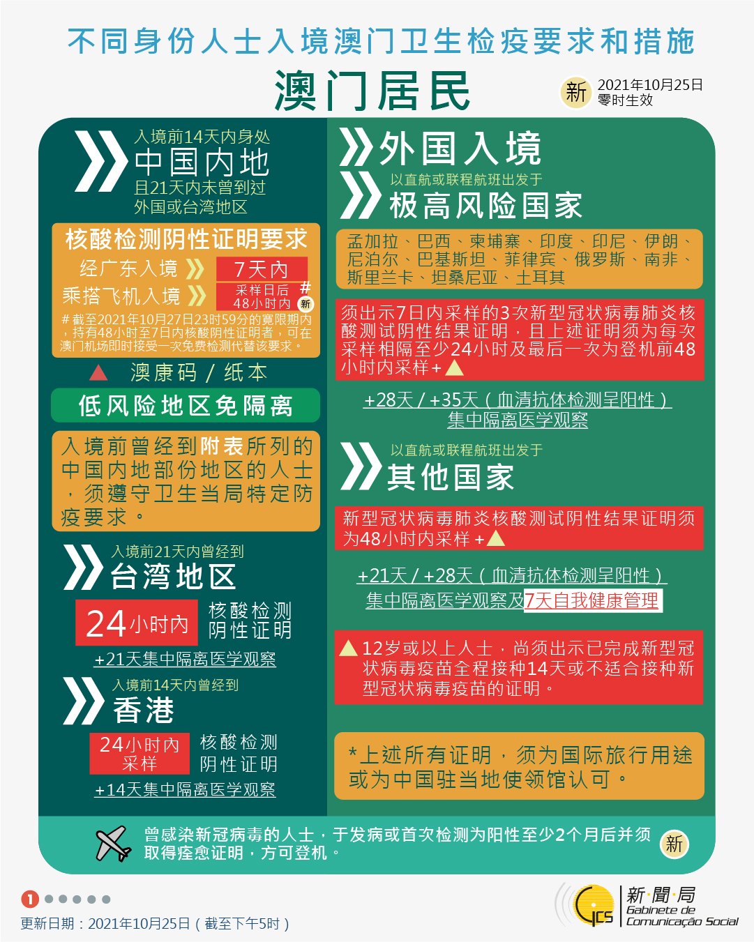【圖文包】2021/10/29最新入境澳門衛生檢疫要求和措施