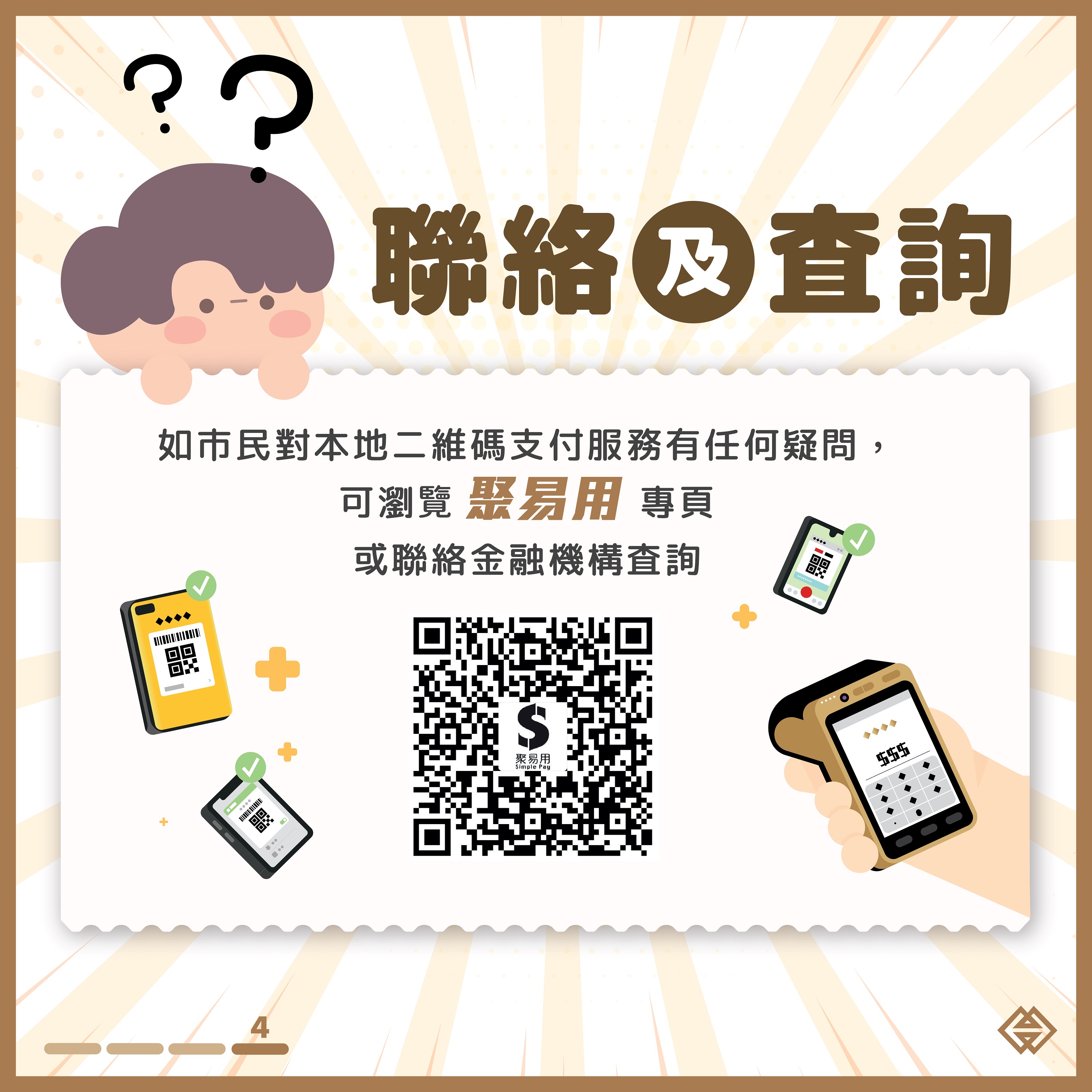 金管局早前已就“聚易用”服務開通專題網頁,內容備有 “聚易用”圖文包、問題集、演示短片,以及移動支付安全使用貼士等資訊,方便公眾瀏覽查閱。如市民或商戶對“聚易用”有任何查詢,請聯絡相關金融機構瞭解詳情。