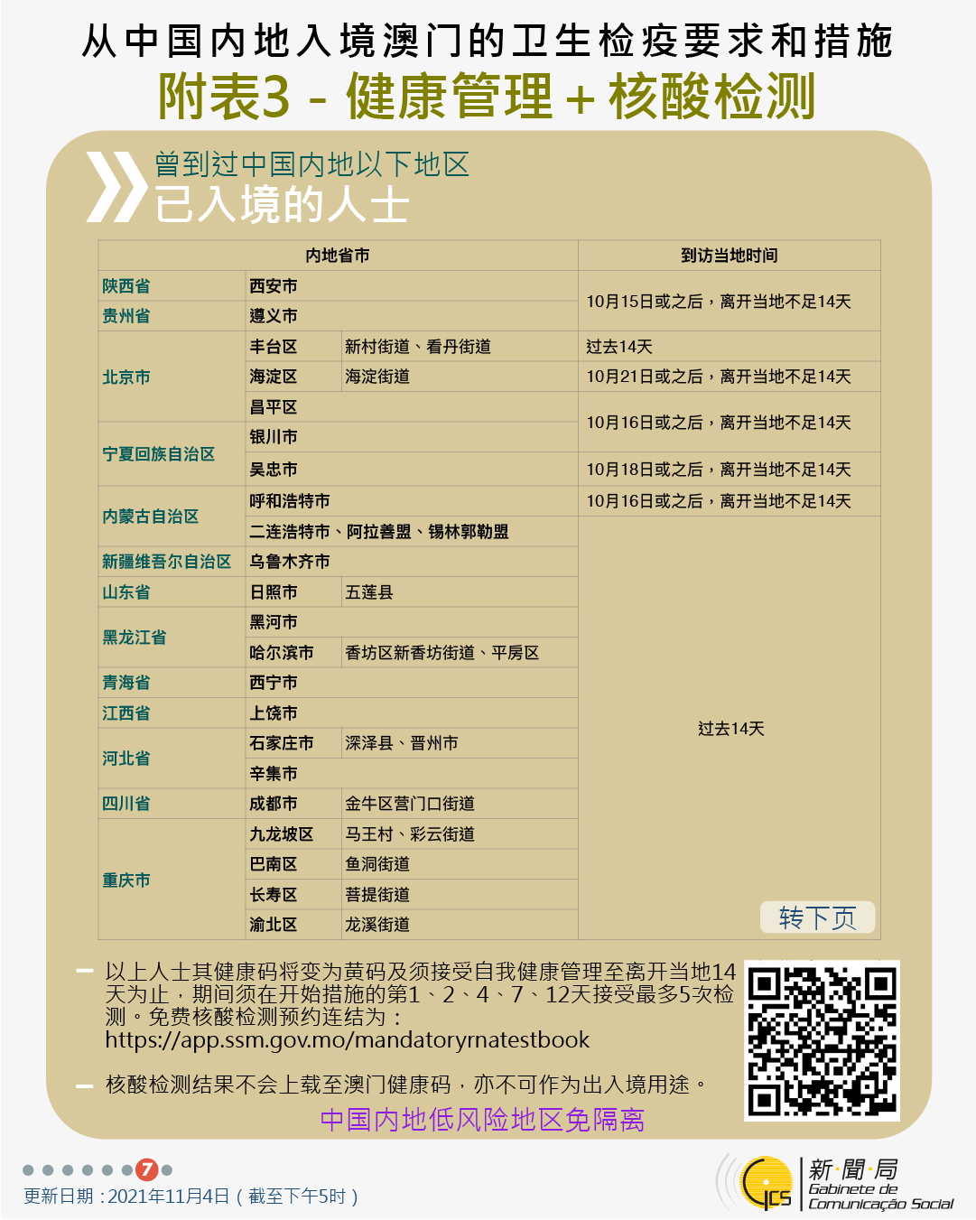 【圖文包】2021/11/4最新入境澳門衛生檢疫要求和措施