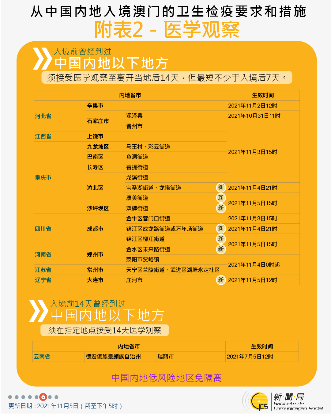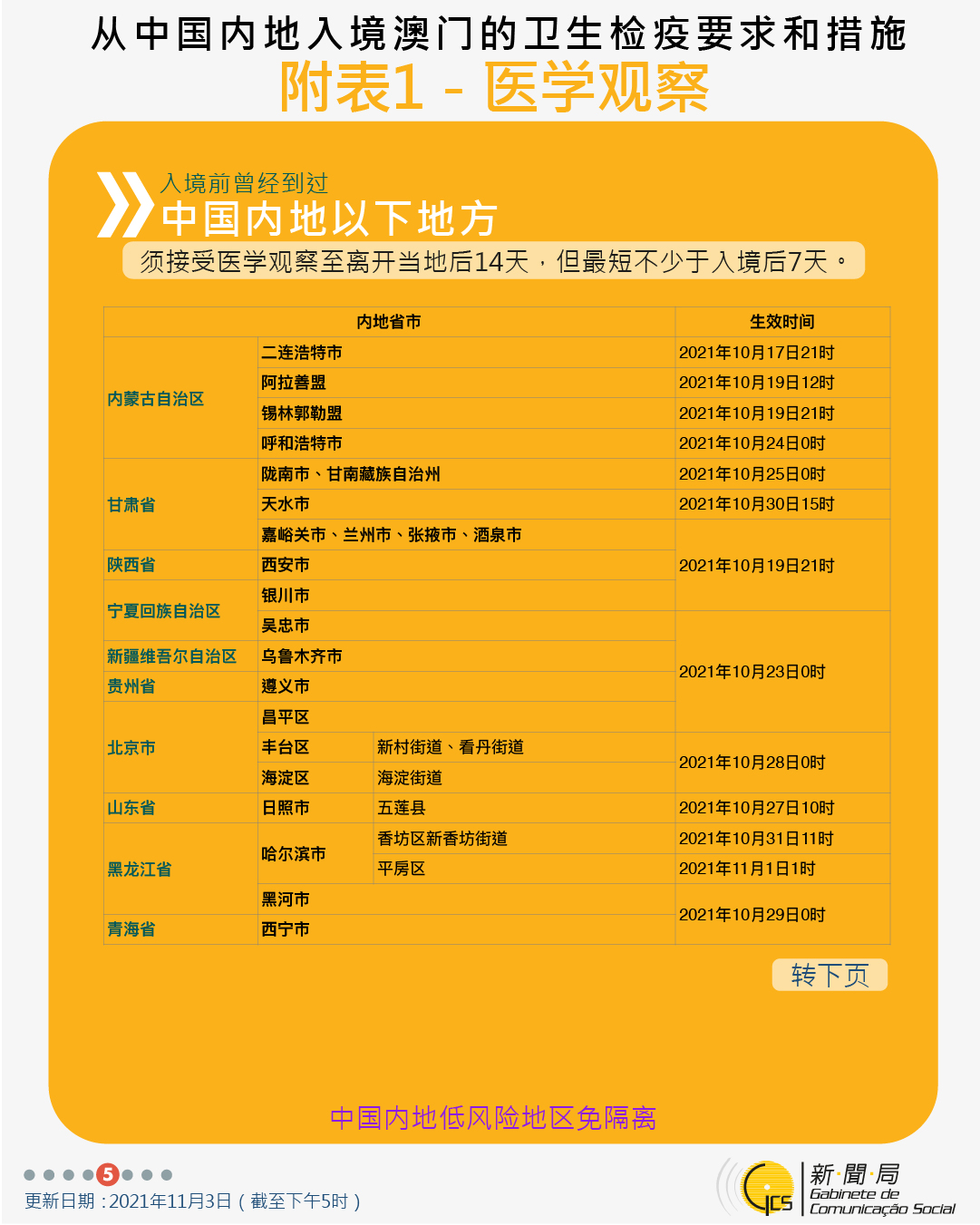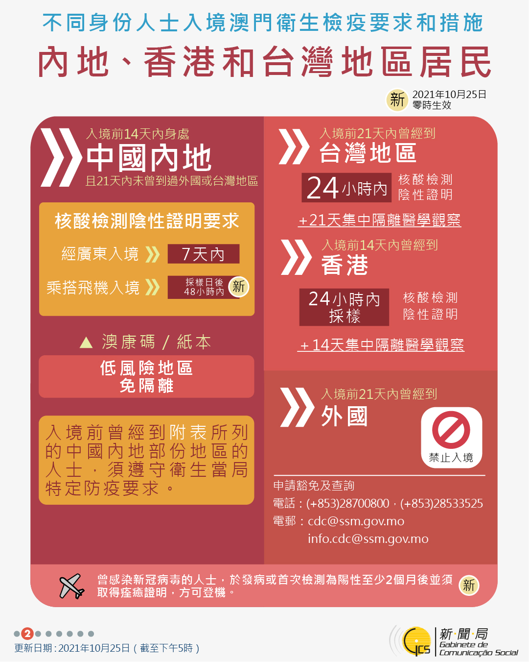 【圖文包】2021/11/5最新入境澳門衛生檢疫要求和措施