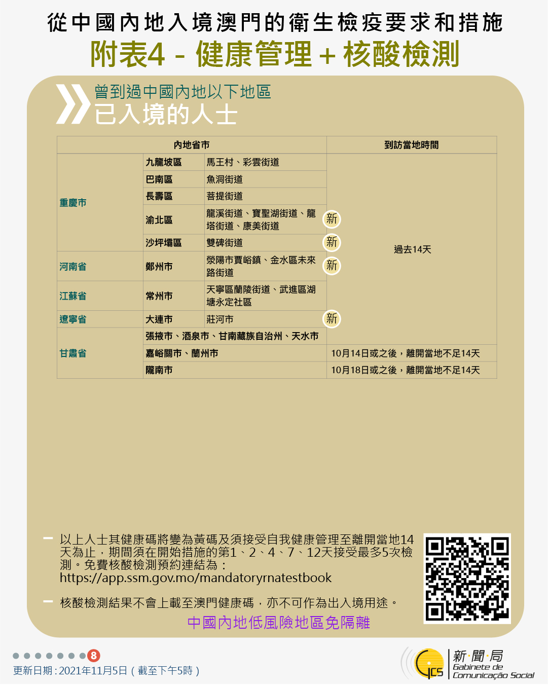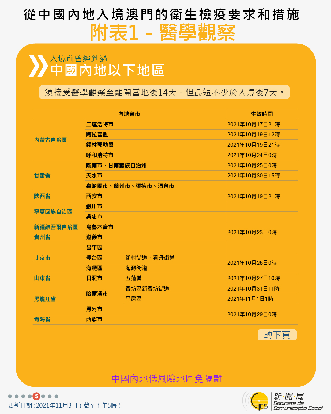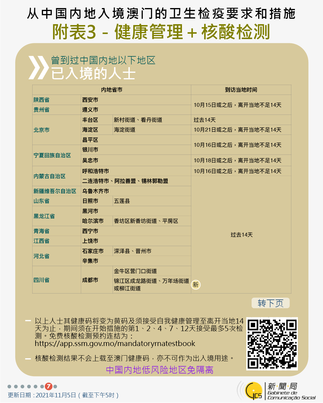 【圖文包】2021/11/5最新入境澳門衛生檢疫要求和措施