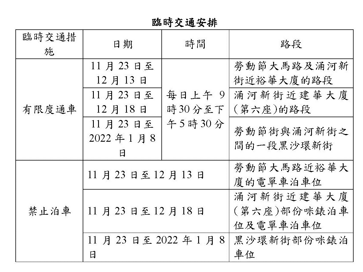 為配合移除固體垃圾自動收集系統設施工程,多處道路於2021年11月23日至2022年1月8日實施臨時交通安排,“黑沙環新街/建華”巴士站於11月25日上午10時至12月25日暫停使用,臨時巴士站設於原站往東北大馬路方向約70米。