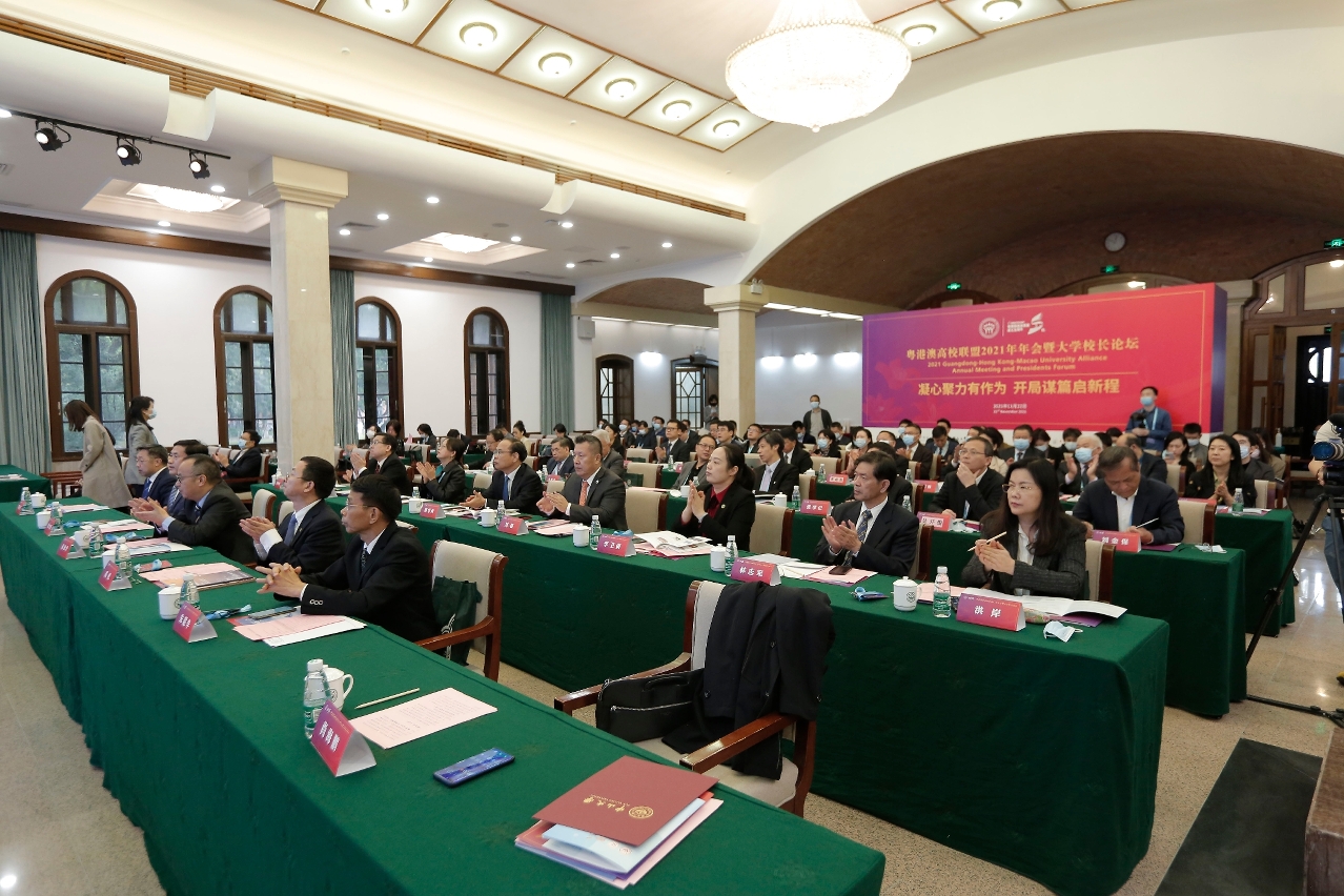 粵港澳高校聯盟今(22)日舉行“粵港澳高校聯盟2021年年會暨大學校長論壇”。在聯盟成立五週年之際,來自粵港澳三地的高校領導及代表於線上線下共聚一堂,圍繞“凝心聚力有作為,開局謀篇啟新程”的主題交流討論,共同推動粵港澳高等教育的發展。