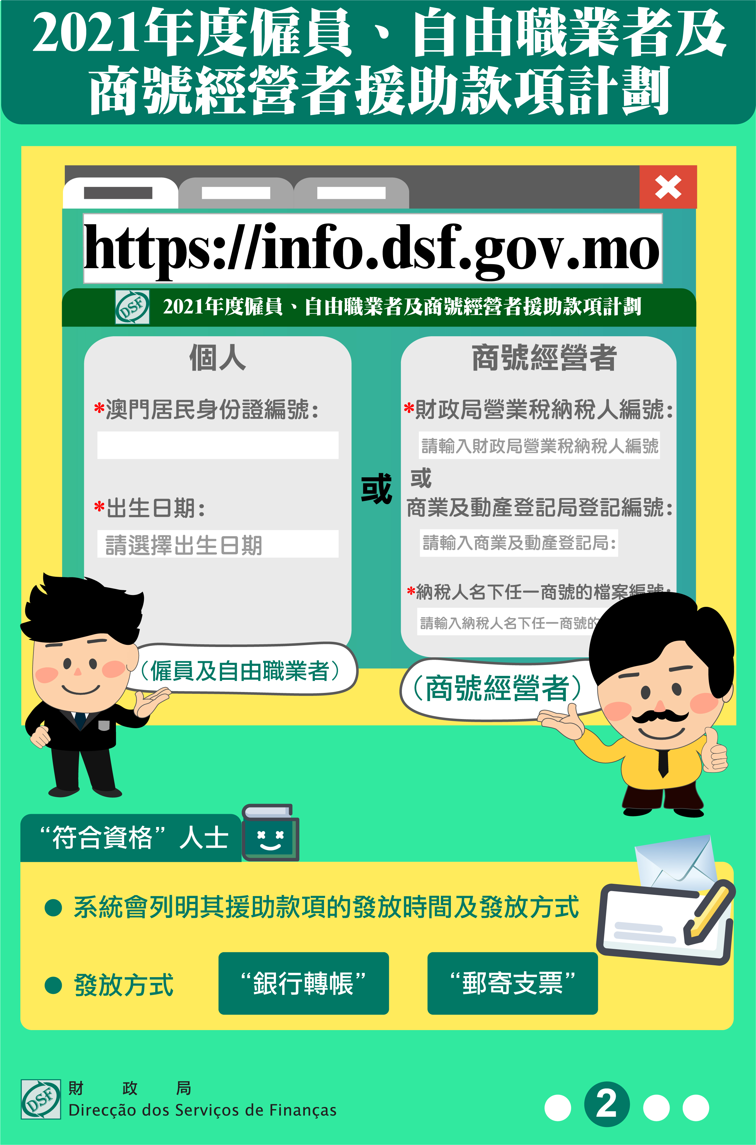 第39/2021號行政法規《2021年度僱員、自由職業者及商號經營者援助款項計劃》(下稱“援助計劃”)於11月16日生效,詳細查詢系統將於明(23)日上午9時啟用,以便各市民查詢。援助款項將於2021年11月26日起以銀行轉帳及郵寄支票方式發放,預計於四個工作日內完成。