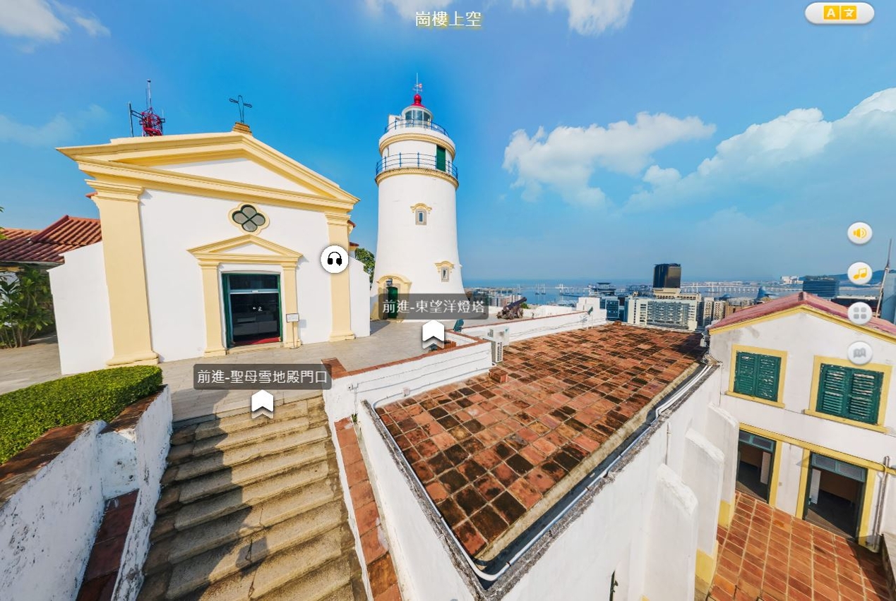 文化局持續推動文化遺產資源的數字化利用,今年率先以澳門歷史城區的“東望洋炮台”及“鄭家大屋”為試點,增設線上VR虛擬導覽功能(IE瀏覽器不支援此功能),公眾只需透過電腦或手機裝置,掃描指定二維碼(QR Code)或登入澳門世界遺產網(www.wh.mo/cn/)或澳門文化遺產網頁(www.culturalheritage.mo)內的“東望洋炮台”及“鄭家大屋”專頁,即可體驗世遺“雲參觀”功能。