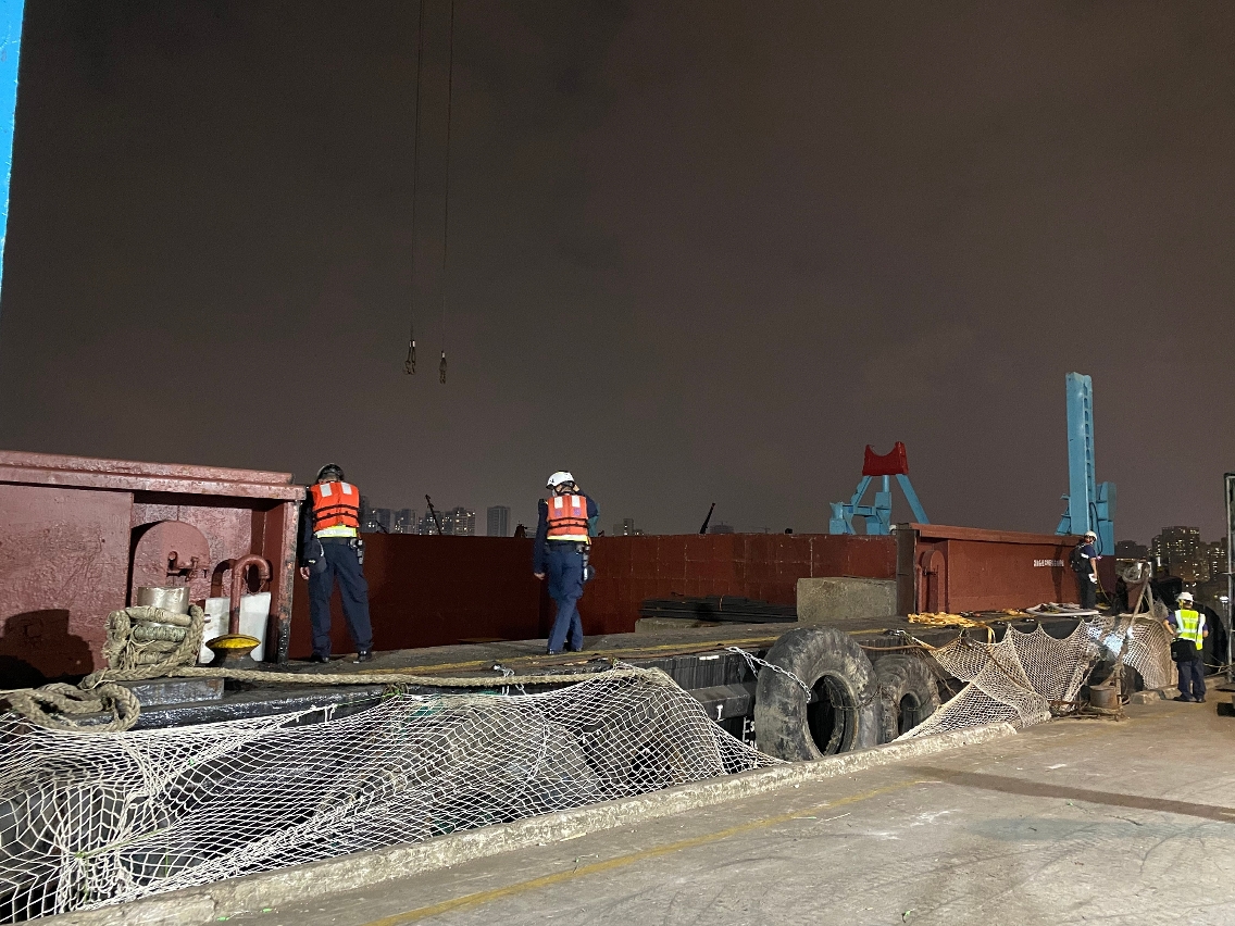 為提高貨運碼頭和海上貨運業界對安全作業的關注,海事及水務局聯同海關早前到內港多個碼頭,針對碼頭及躉船的操作安全和職業安全進行突擊聯合巡查。