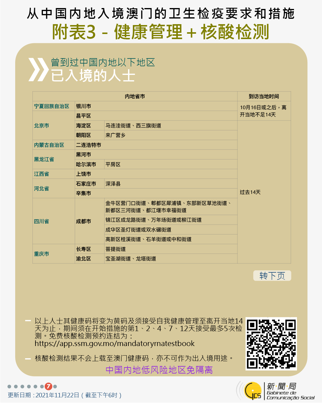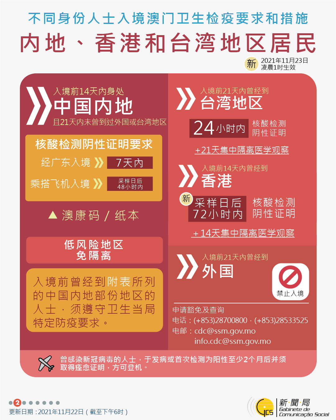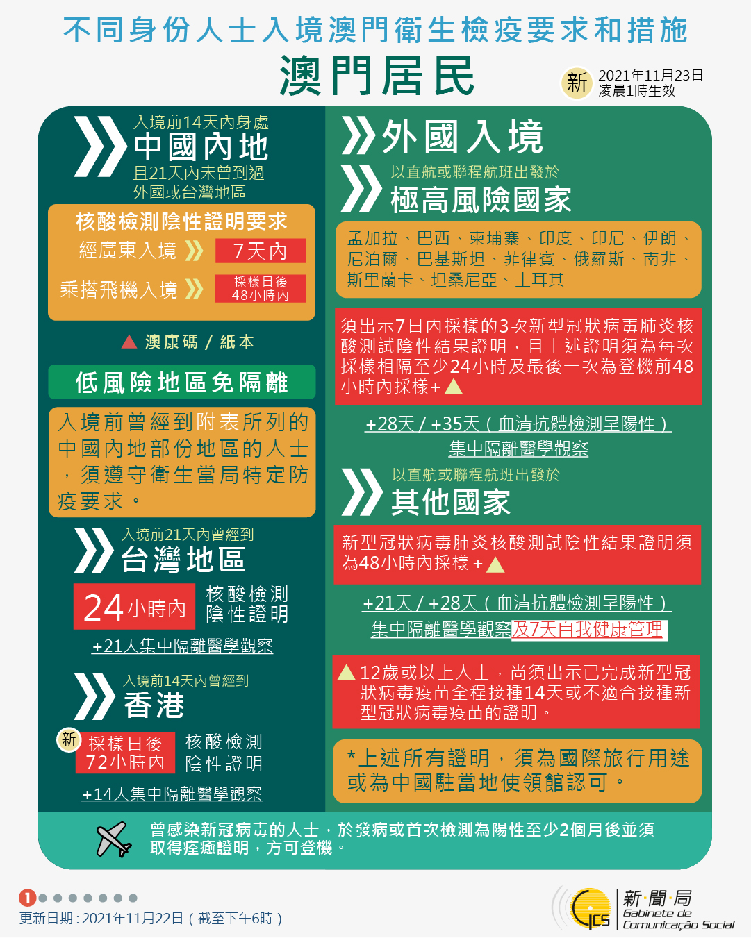 【圖文包】2021/11/22最新入境澳門衛生檢疫要求和措施