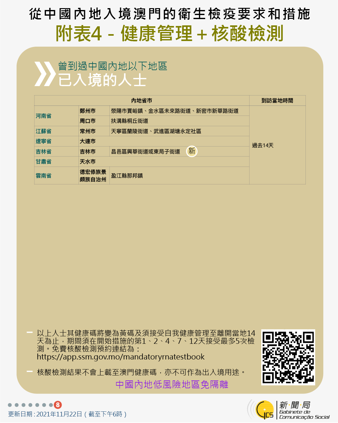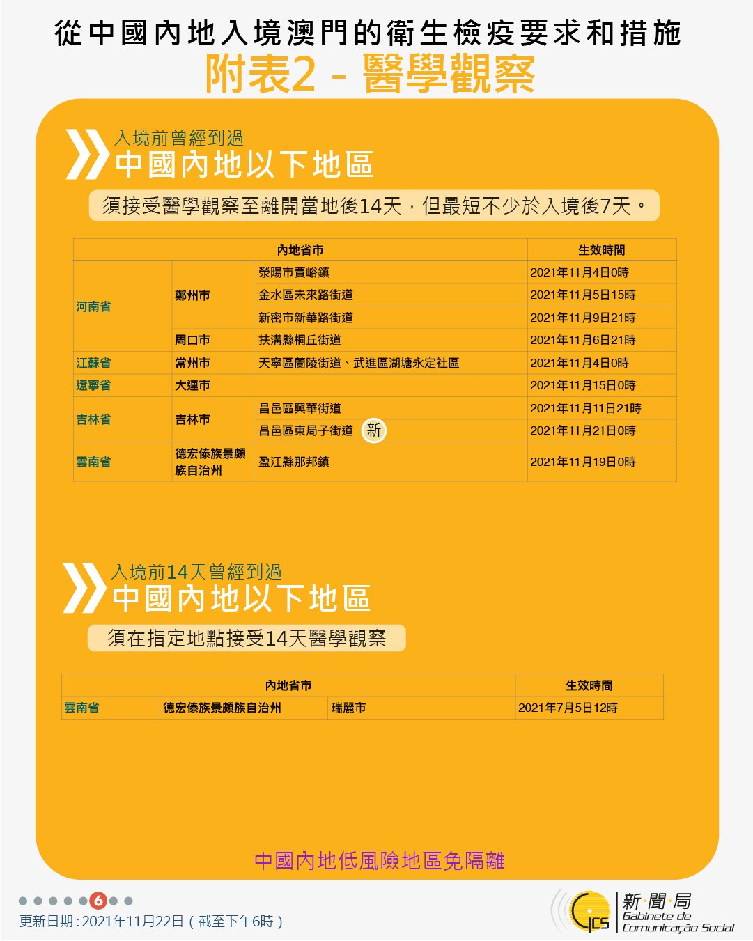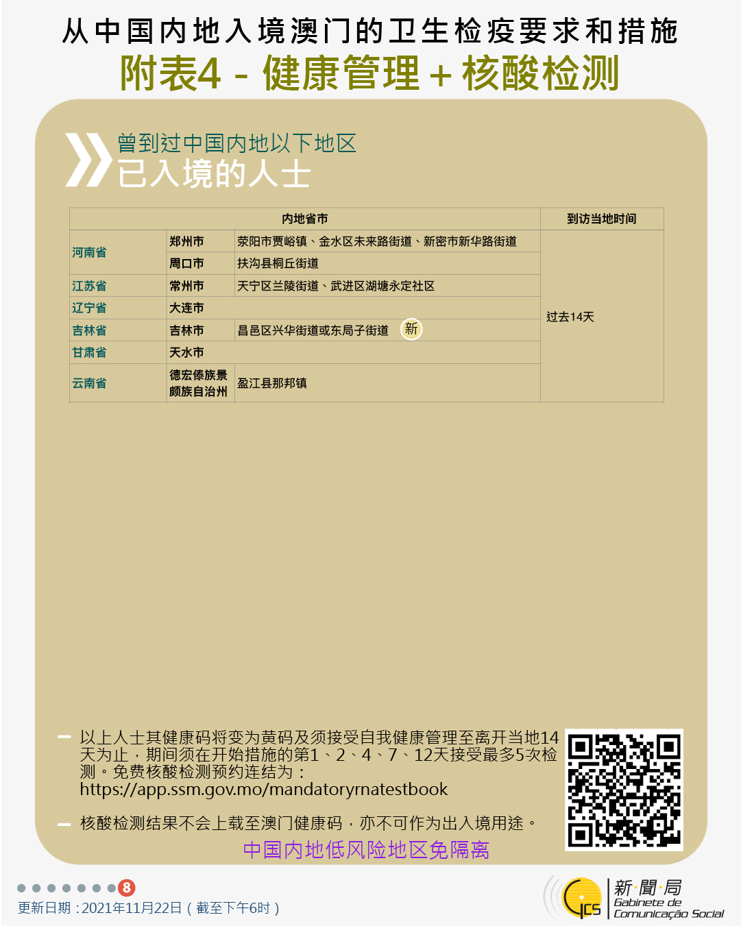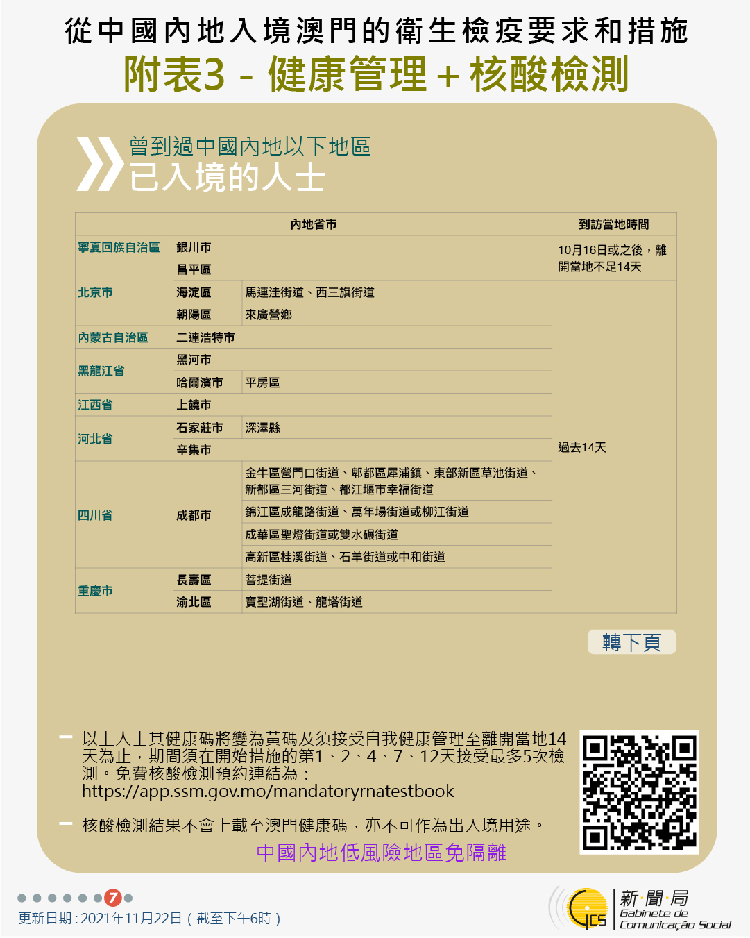 【圖文包】2021/11/22最新入境澳門衛生檢疫要求和措施
