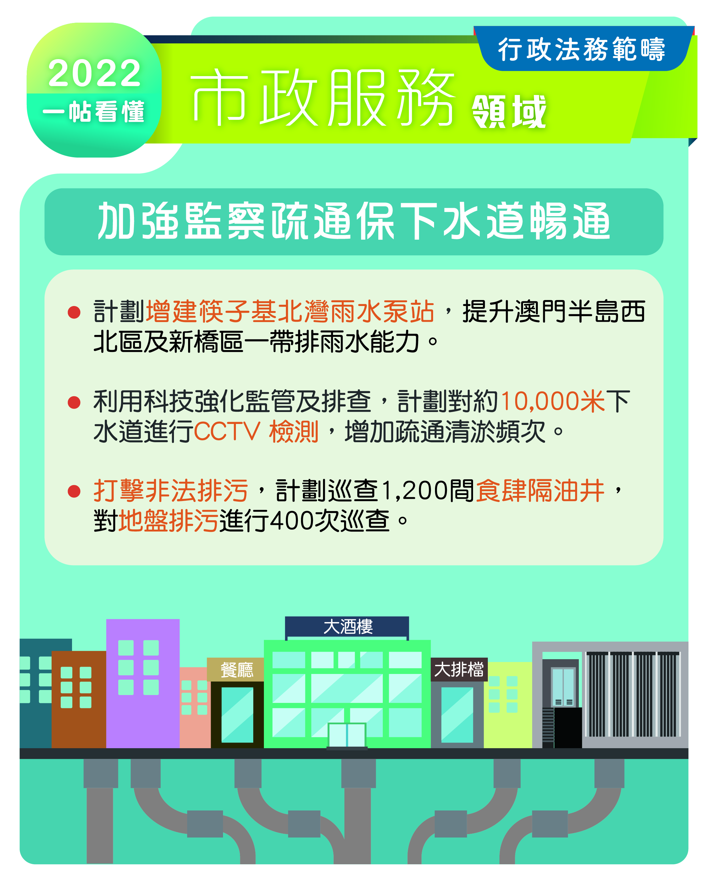 2022行政法務範疇施政方針_市政服務領域_加強監察疏通保下水道暢通