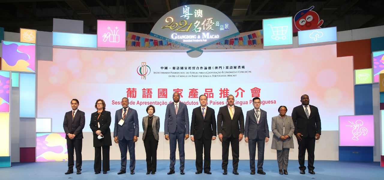 由中葡論壇(澳門)常設秘書處、澳門貿易投資促進局及廣東省商務廳聯合主辦的“2021粵澳名優商品展—葡語國家產品推介會”,於 11月26日假澳門威尼斯人會展中心舉行。中國與葡語國家經貿合作論壇常設秘書處副秘書長贊東、聯絡辦主任米格爾、輔助辦主任莫苑梨、澳門貿易投資促進局執行委員李藻森和廣東省商務廳副廳長馬樺等嘉賓出席。