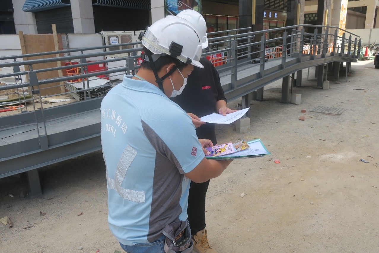 與此同時,勞工局人員於巡查期間,向業界派發針對高處工作安全的《建築工地工作安全指引》系列(繁、簡體)小冊子,如:《高空工作之棚架與危險開口篇》、《梯具平台應用篇》等,呼籲業界,包括承造商、僱主、安全人員及工友在進行高處工作時必須提高警覺,切勿低估高空工作的潛在危險,並採取適當的集體及個人保護措施,避免意外發生。